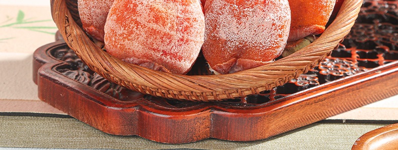 每个柿饼上都挂了一层厚厚的白霜,香甜绵软,溏心十足。