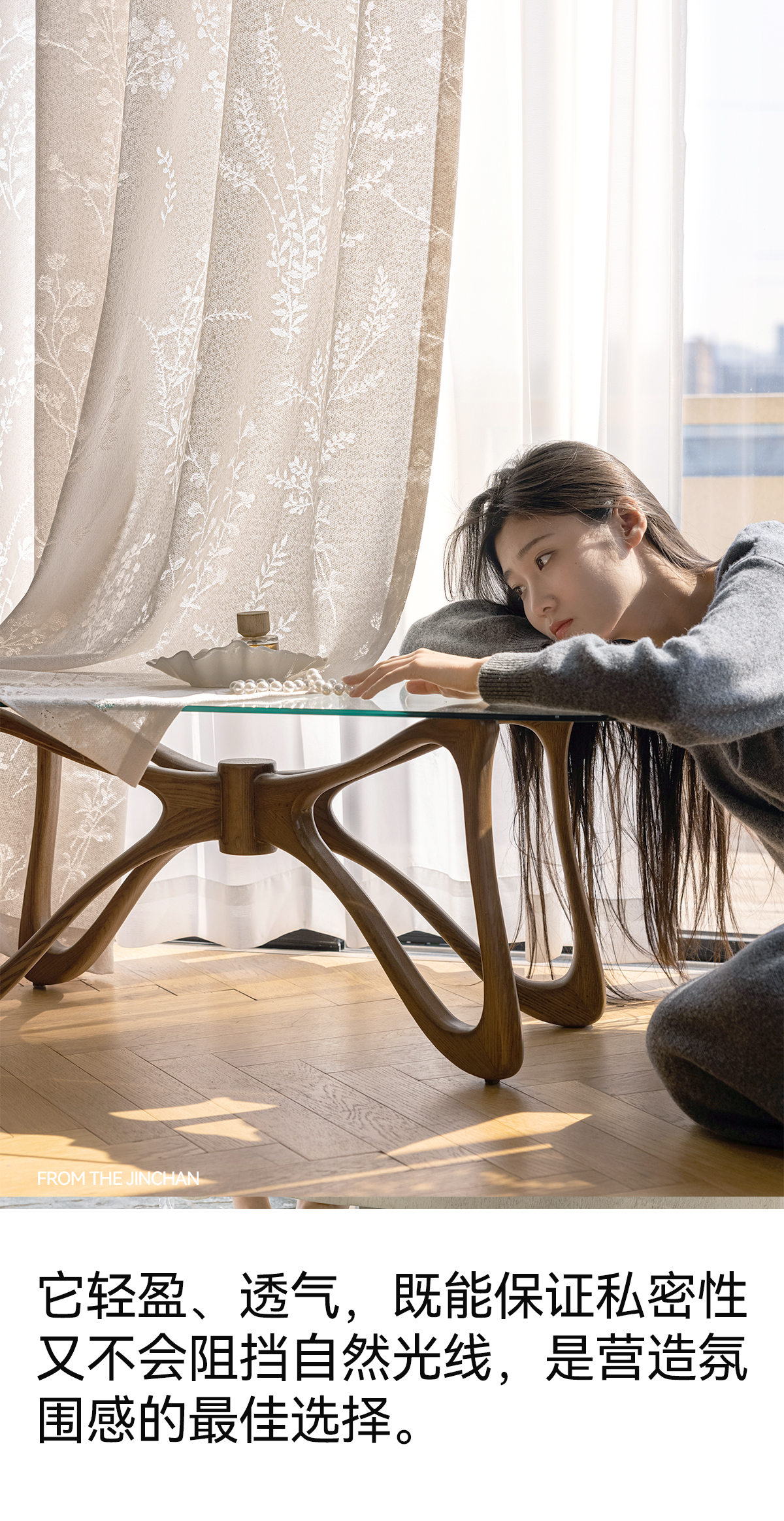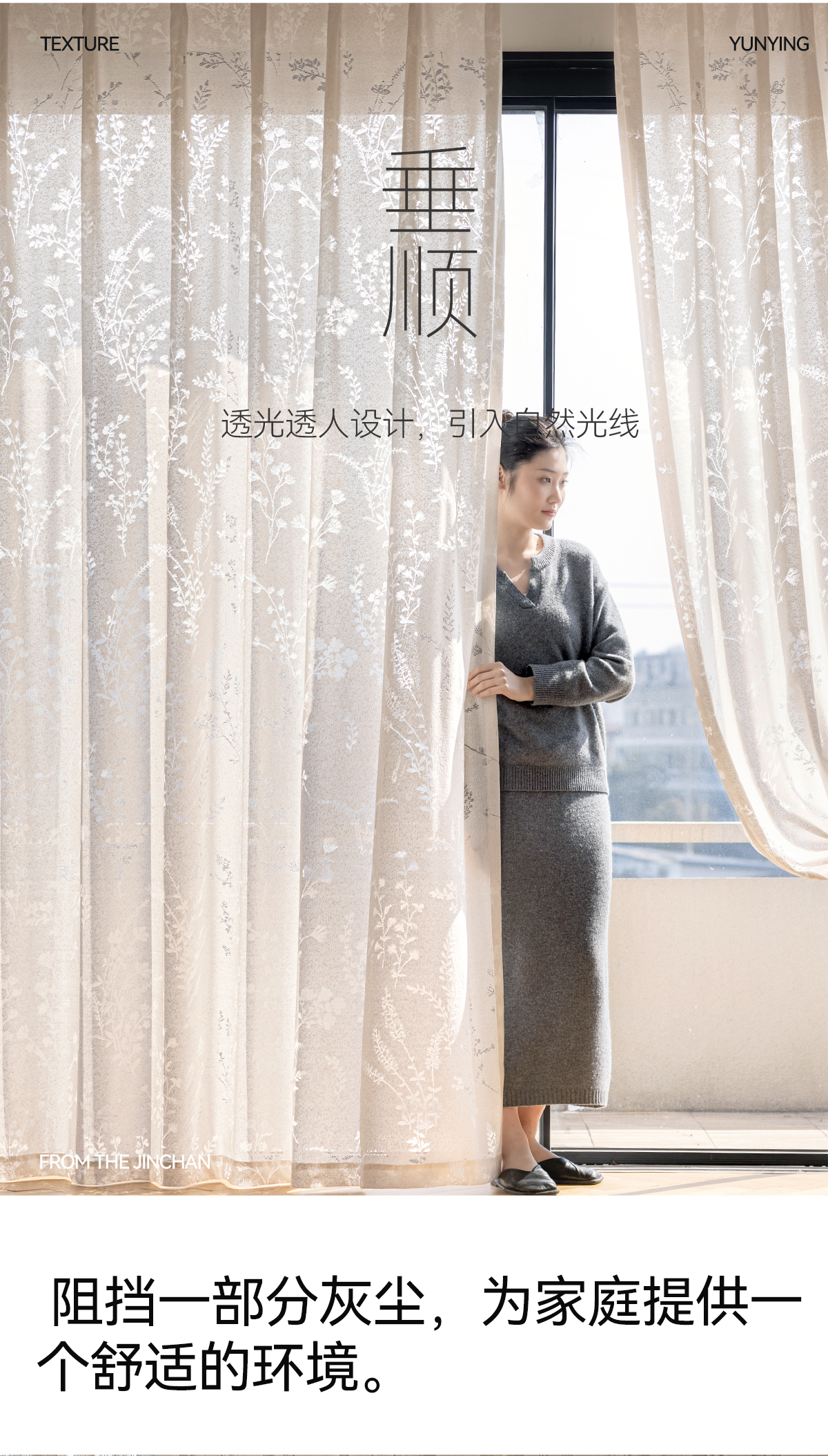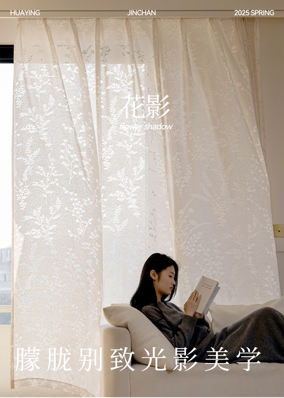 【花枝影】金蝉植物纹理朦胧光影纱帘
