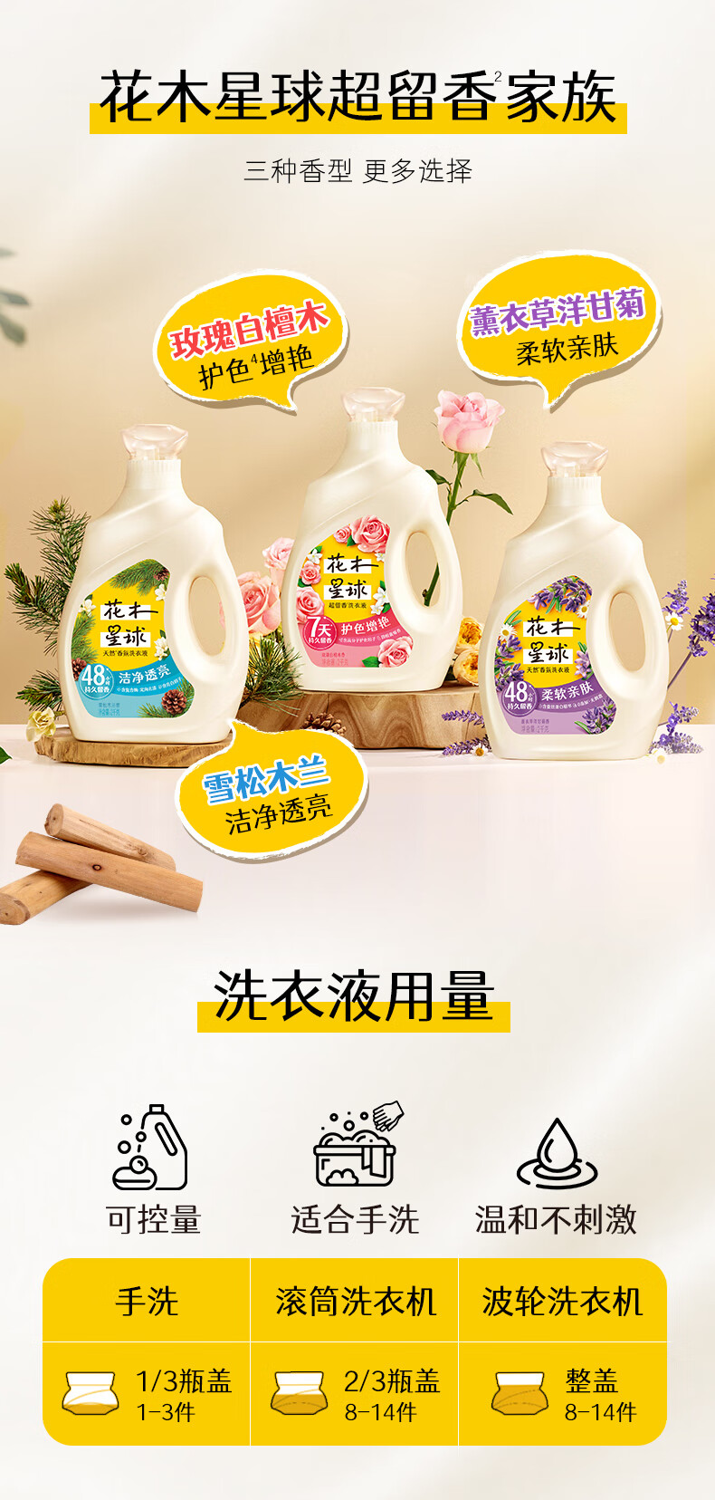 花木星球天然香氛洗衣液 洁净透亮2KG*2桶