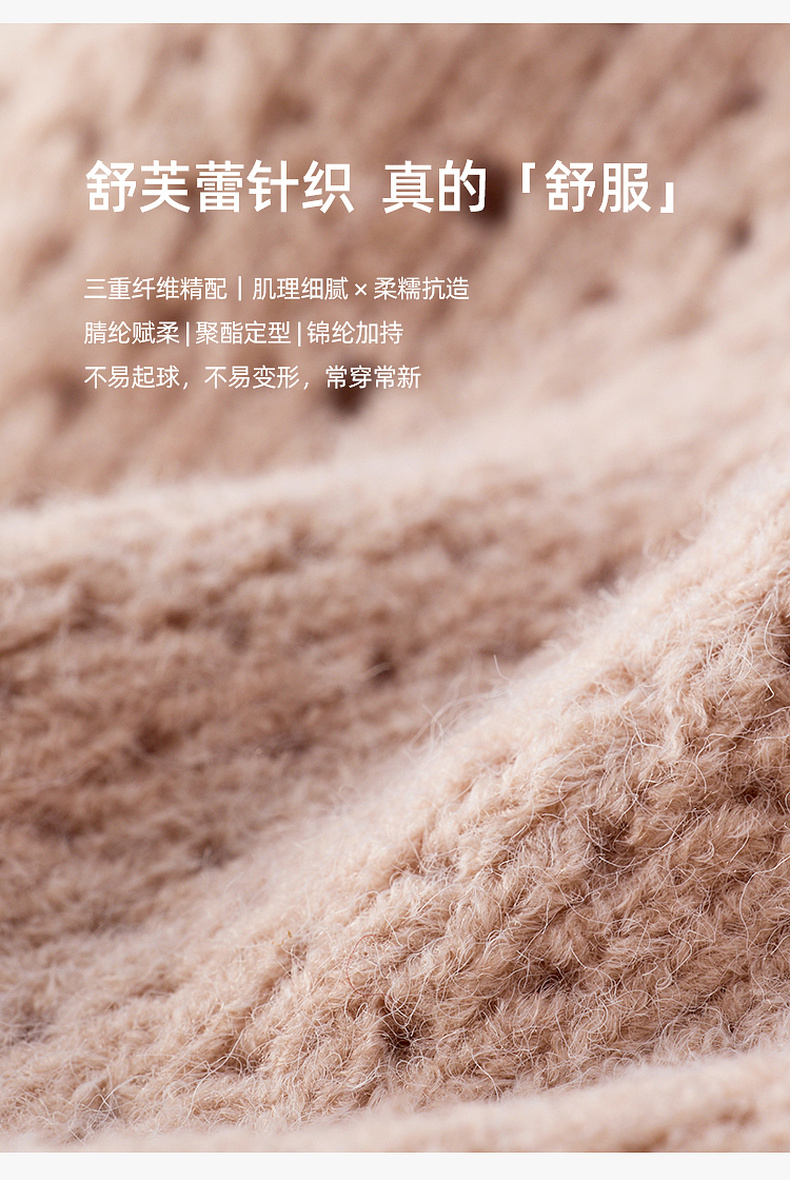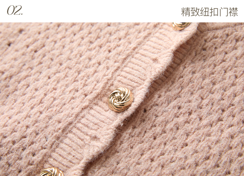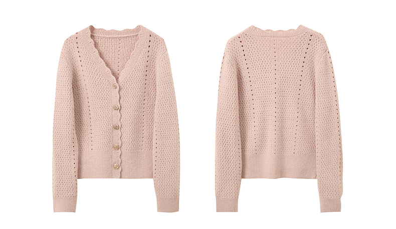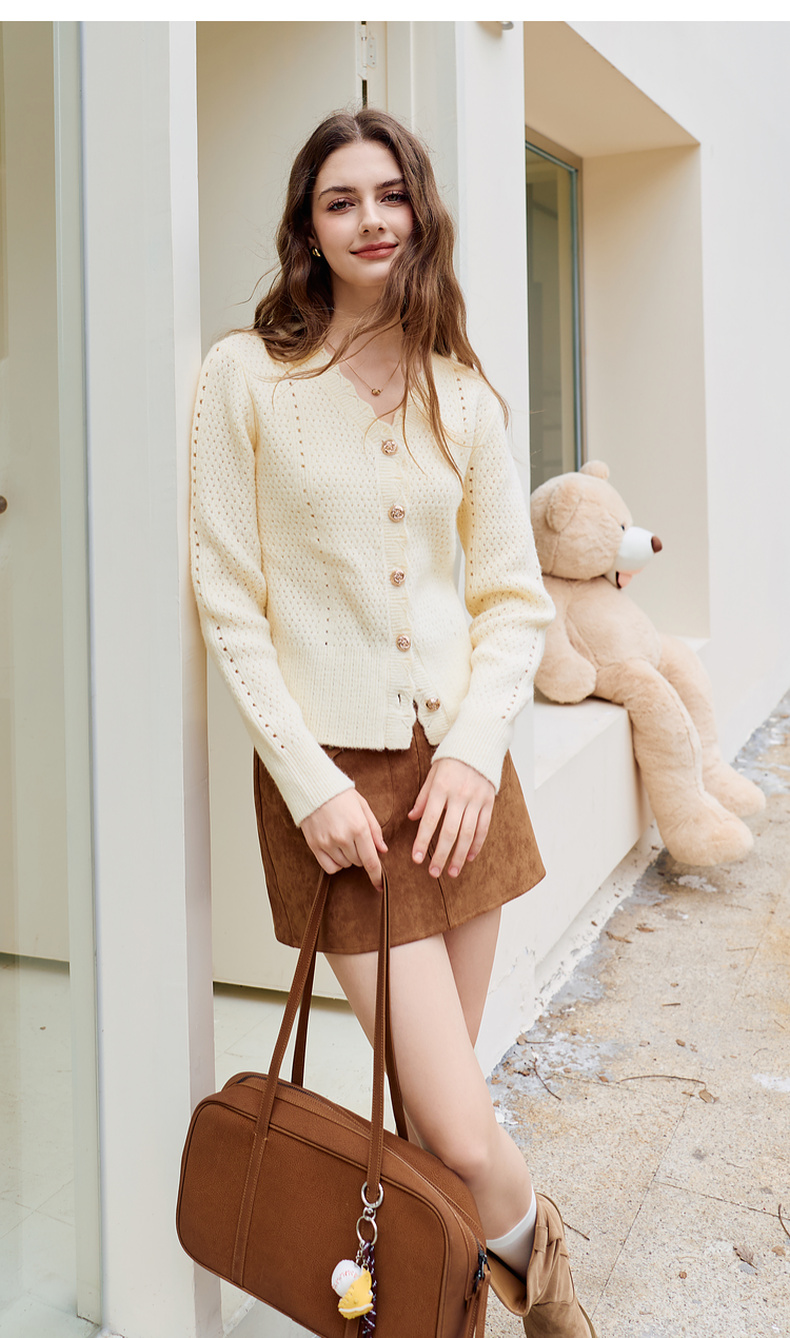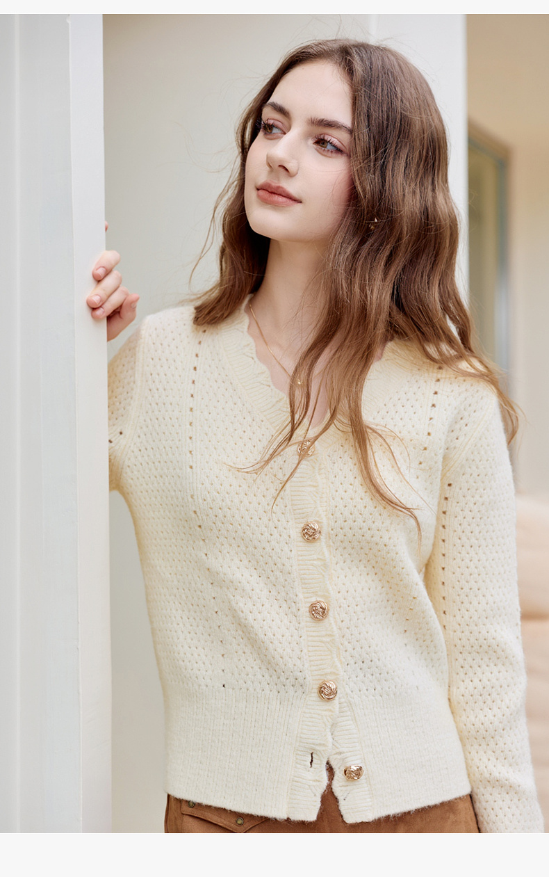 三彩2026春季新款V领针织衫镂空单排扣长袖开衫外套显瘦M