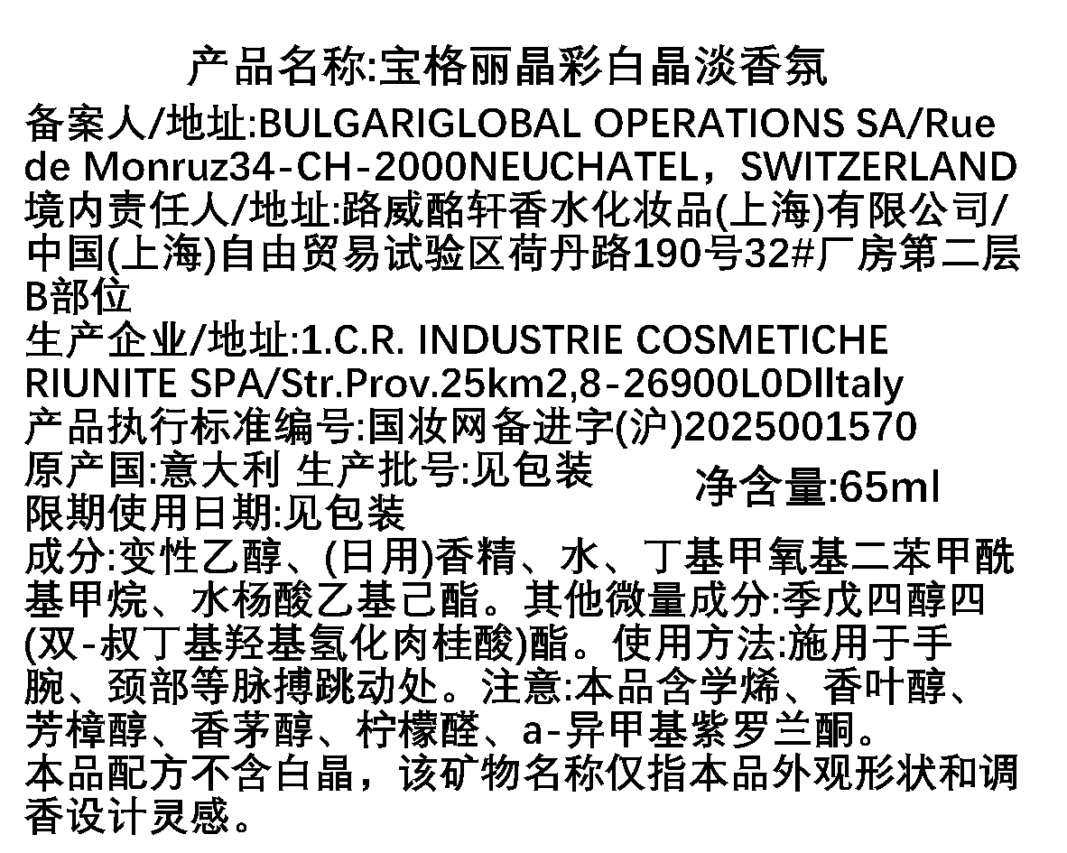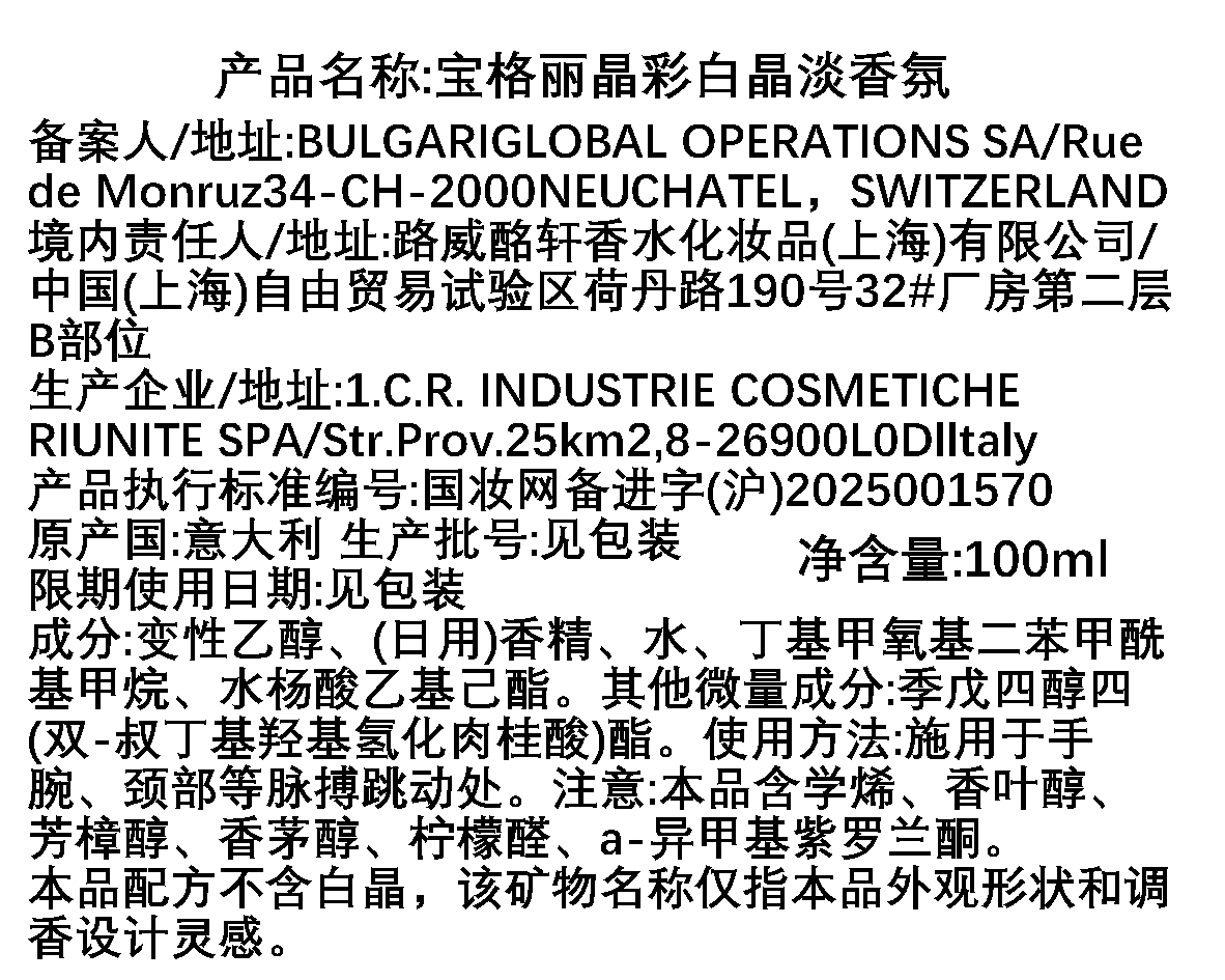 BVLGARI宝格丽 白晶 (晶莹) 香水