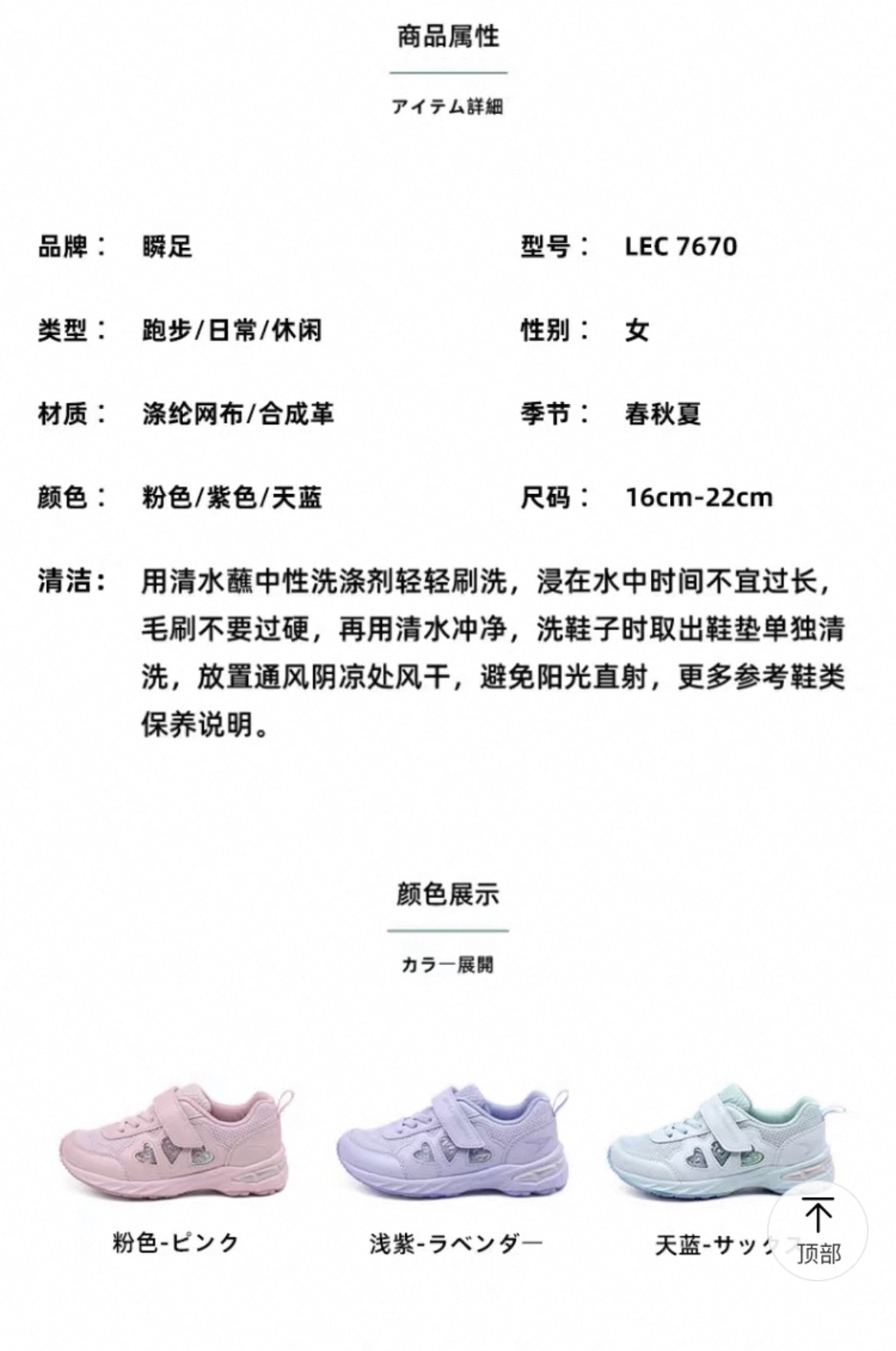 【限时特价!!!】【瞬足童鞋】专柜同款。选择瞬足,选择健康,选择快乐! 女童款 LEC7670 Achilles