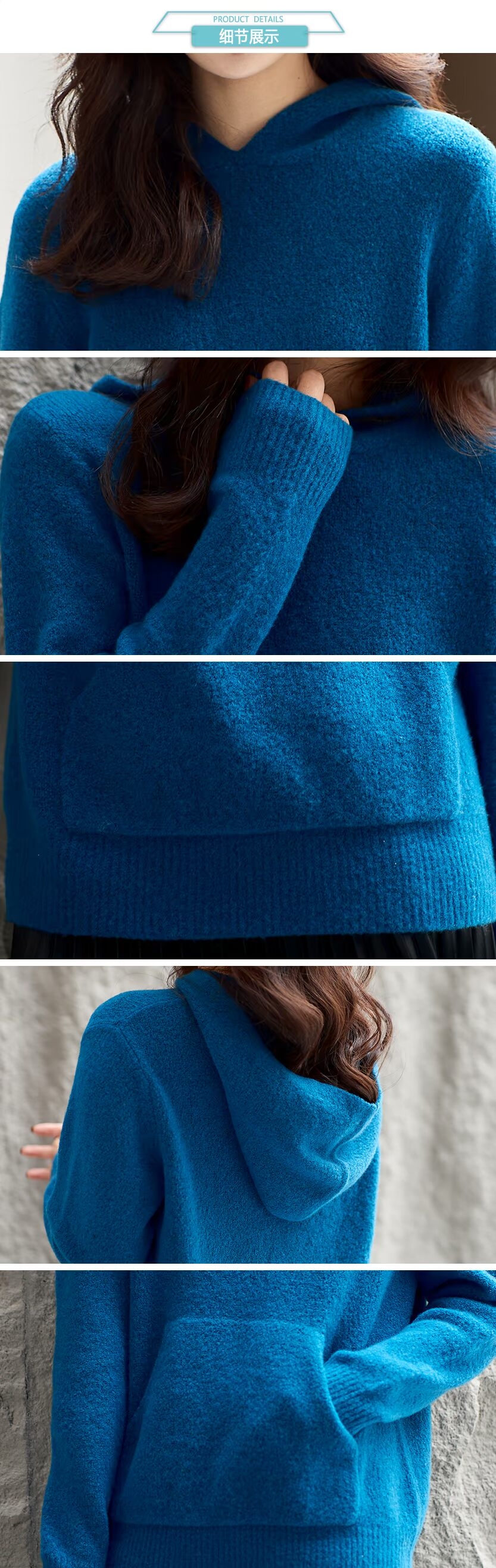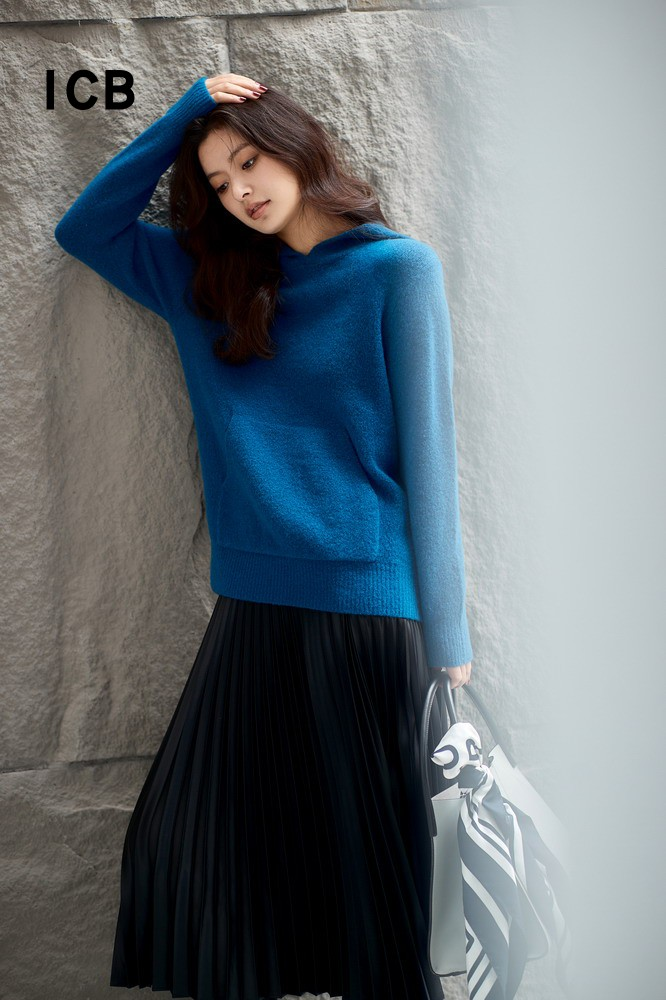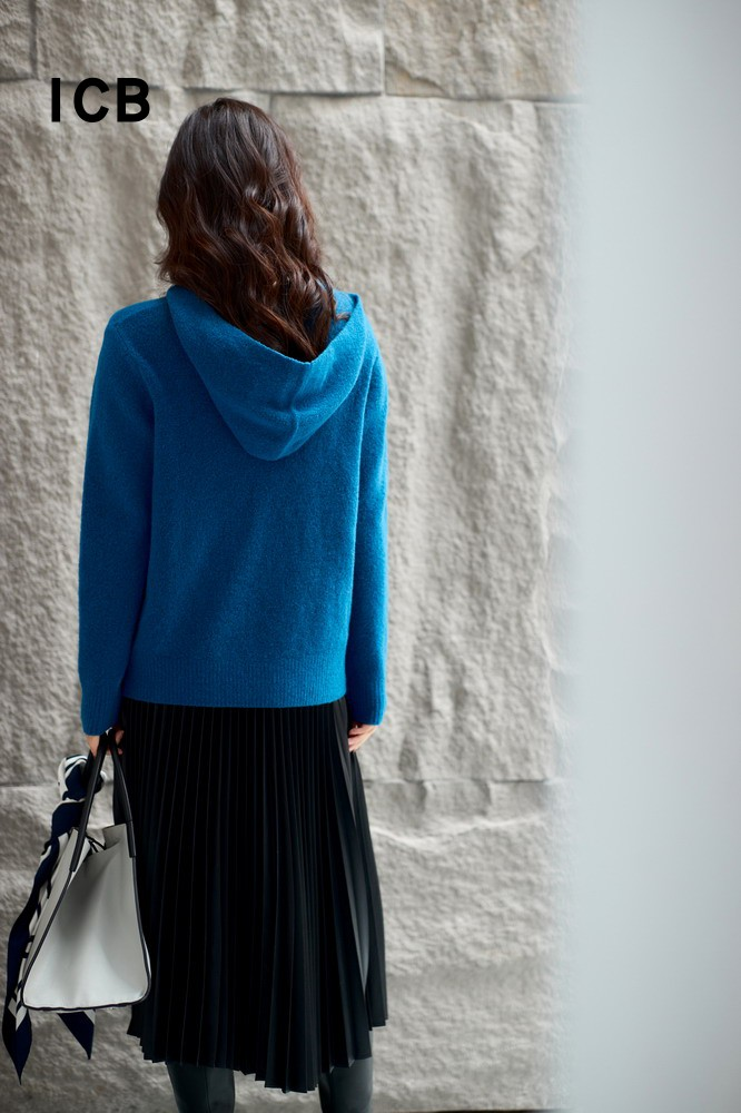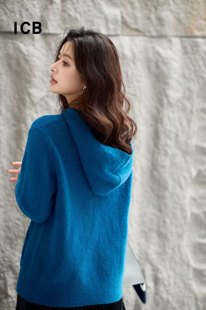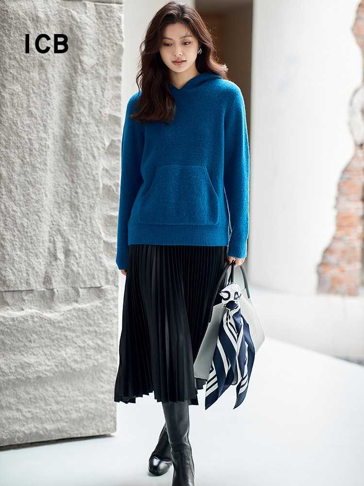 ICB日系秋季通勤直筒羊毛羊绒混纺连帽套头毛衣针织毛衫商场同款