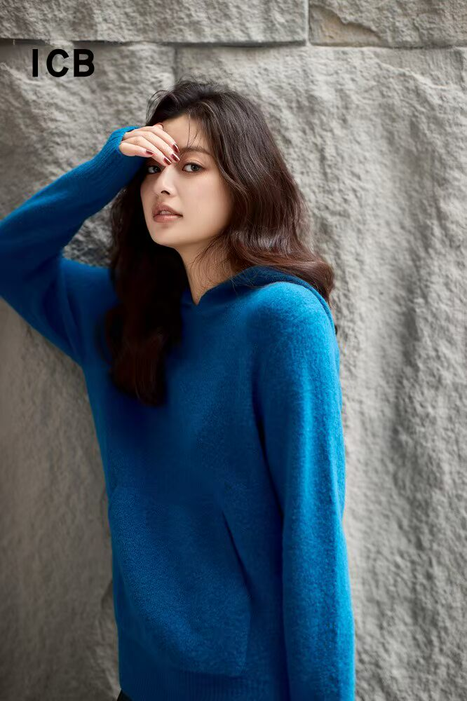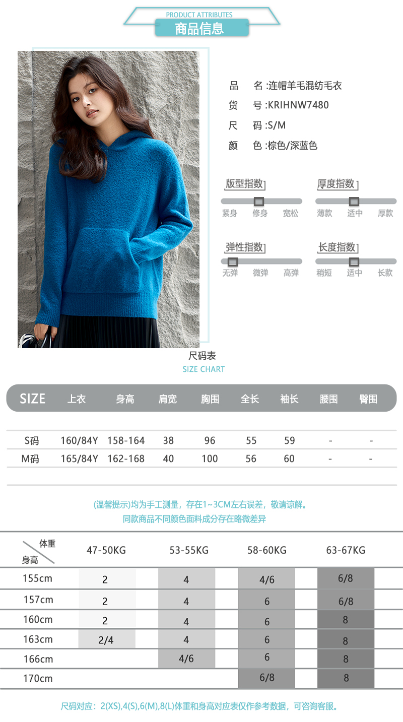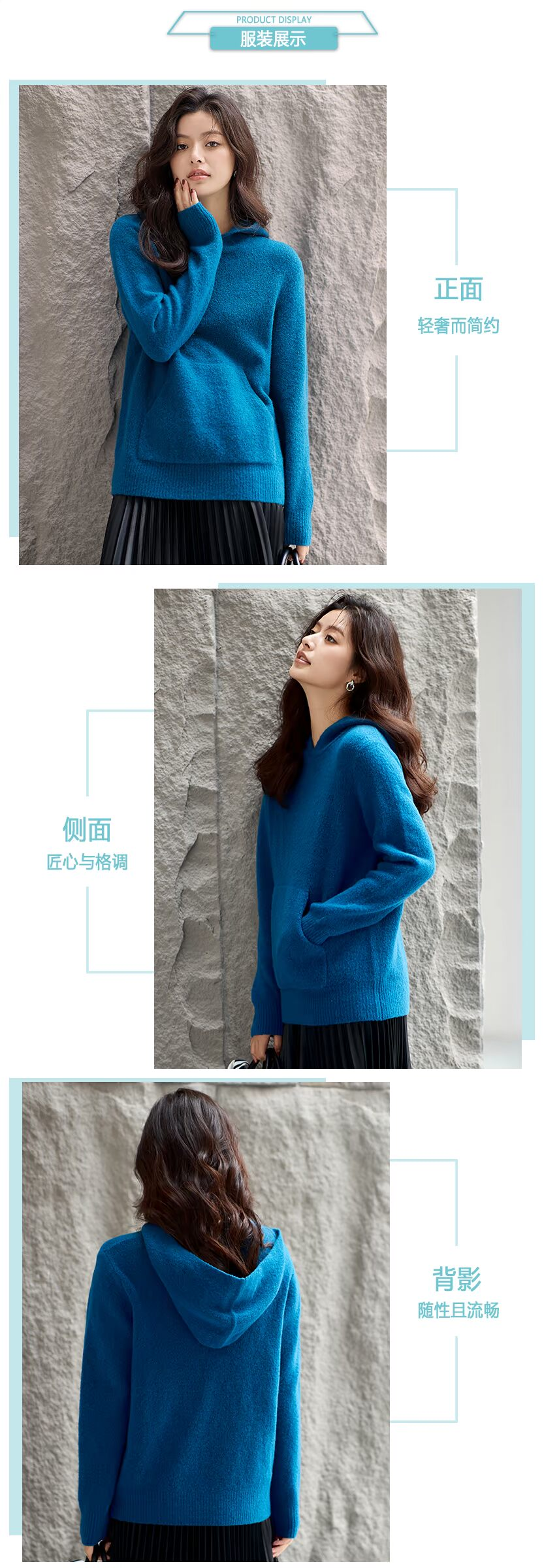ICB日系秋季通勤直筒羊毛羊绒混纺连帽套头毛衣针织毛衫商场同款