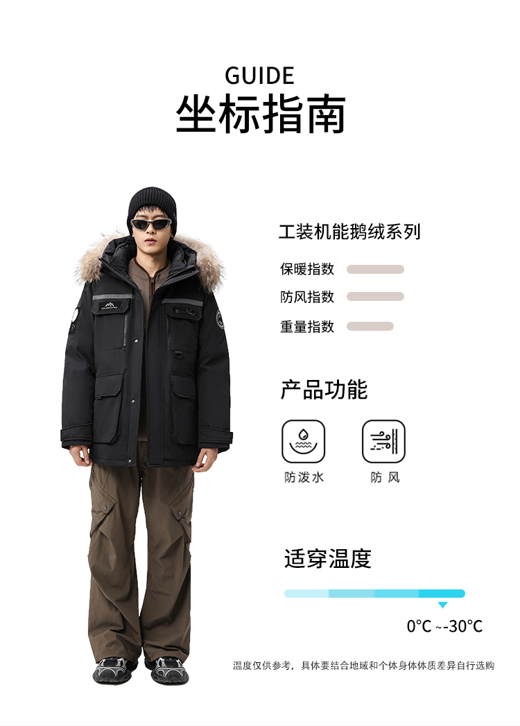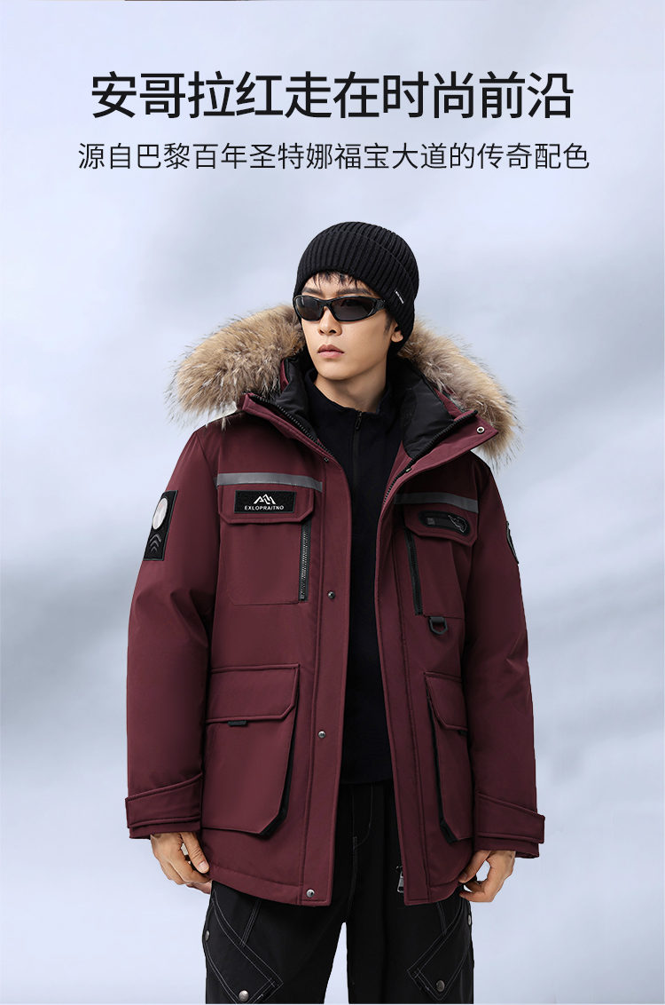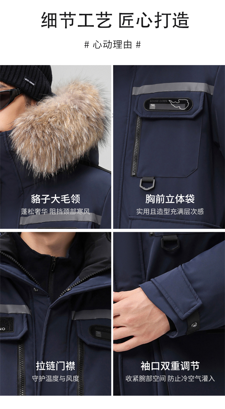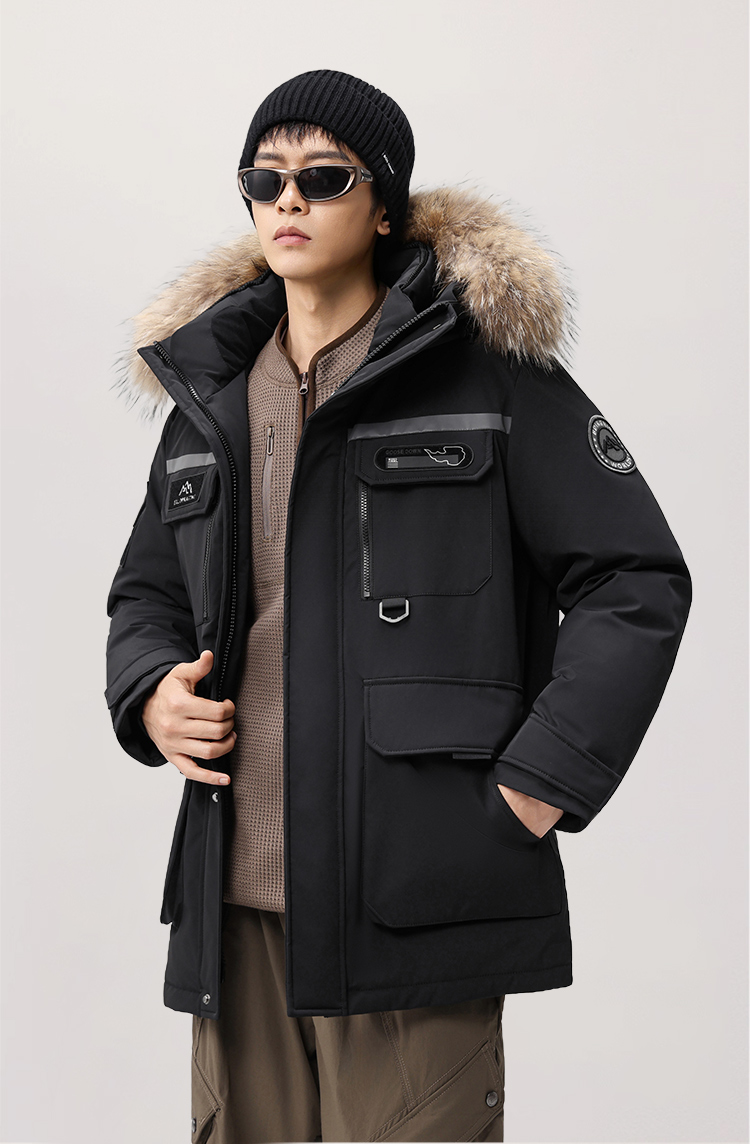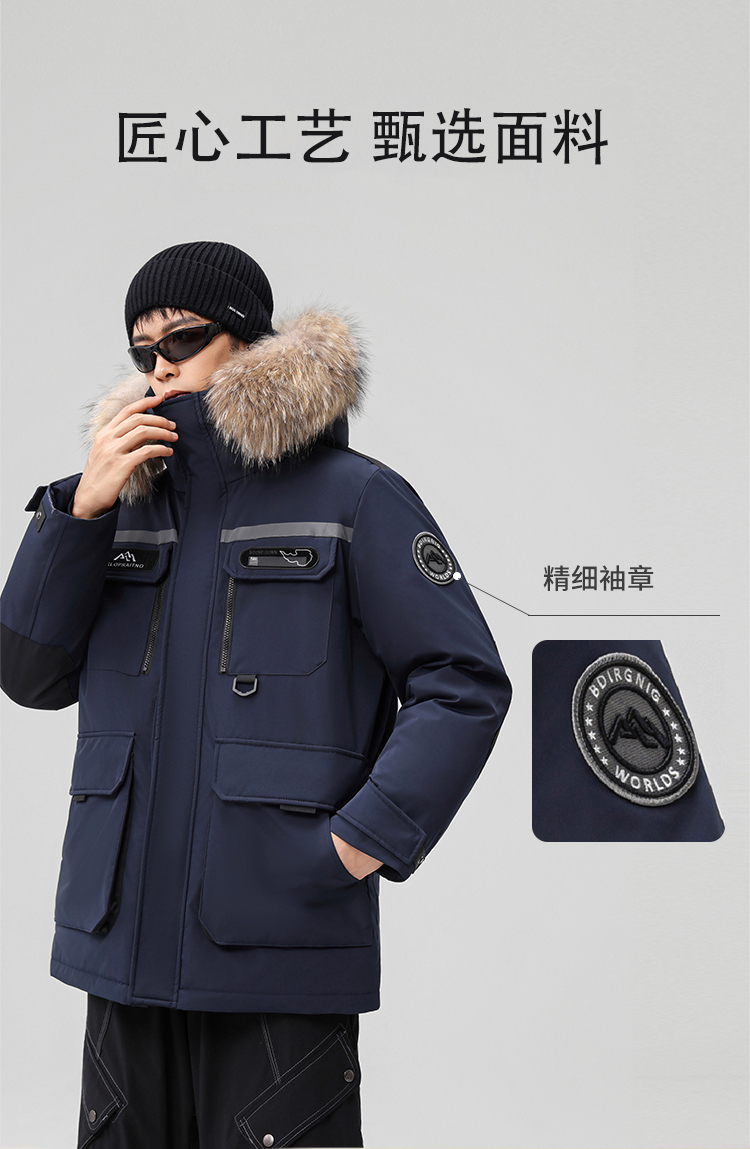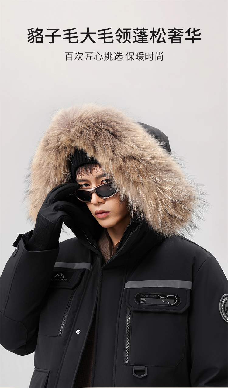 【户外系列】个调 2025冬季新款鹅绒服男高端户外加厚保暖羽绒服连帽工装风大毛领2029 黑色/藏蓝/安哥拉红 170-195 保暖时尚