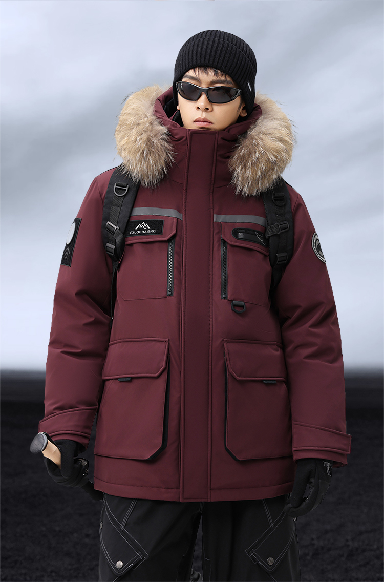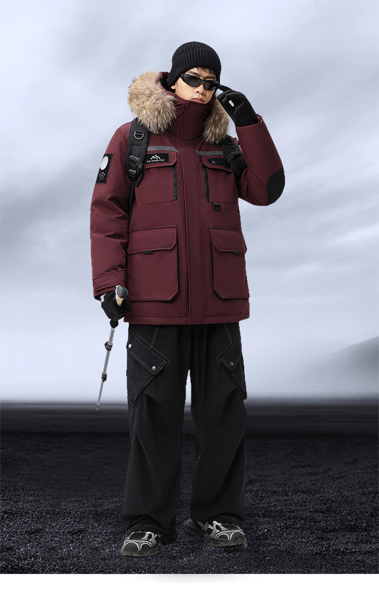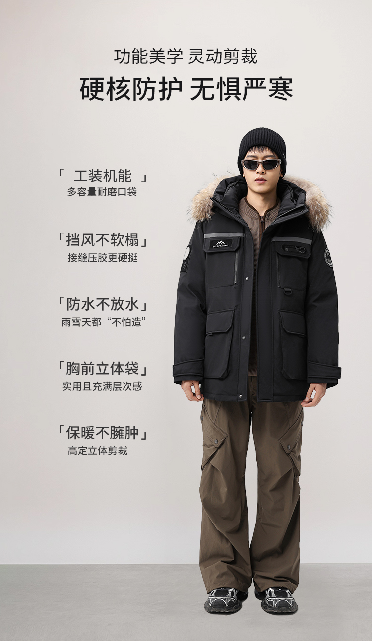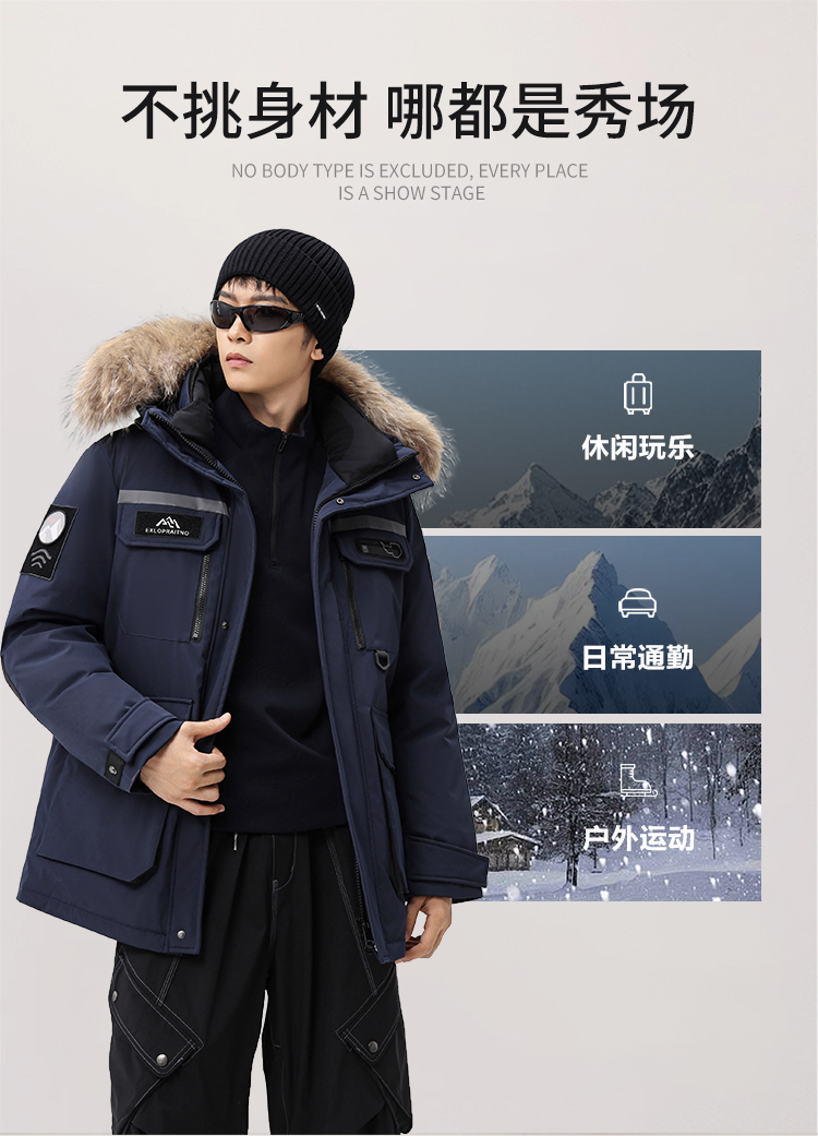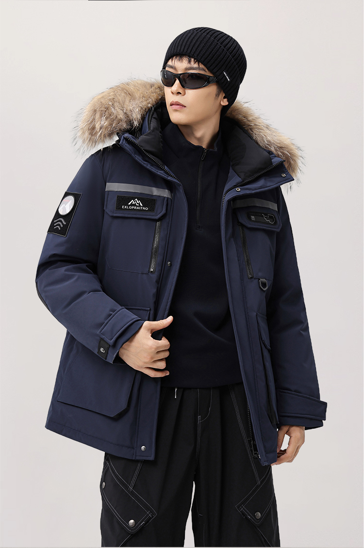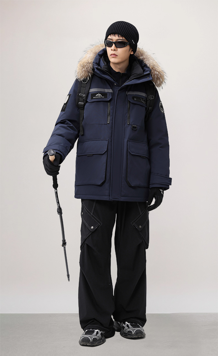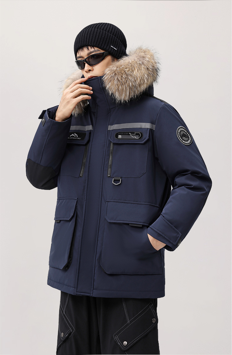 【户外系列】个调 2025冬季新款鹅绒服男高端户外加厚保暖羽绒服连帽工装风大毛领2029 黑色/藏蓝/安哥拉红 170-195 保暖时尚