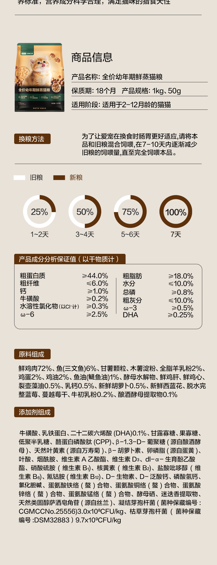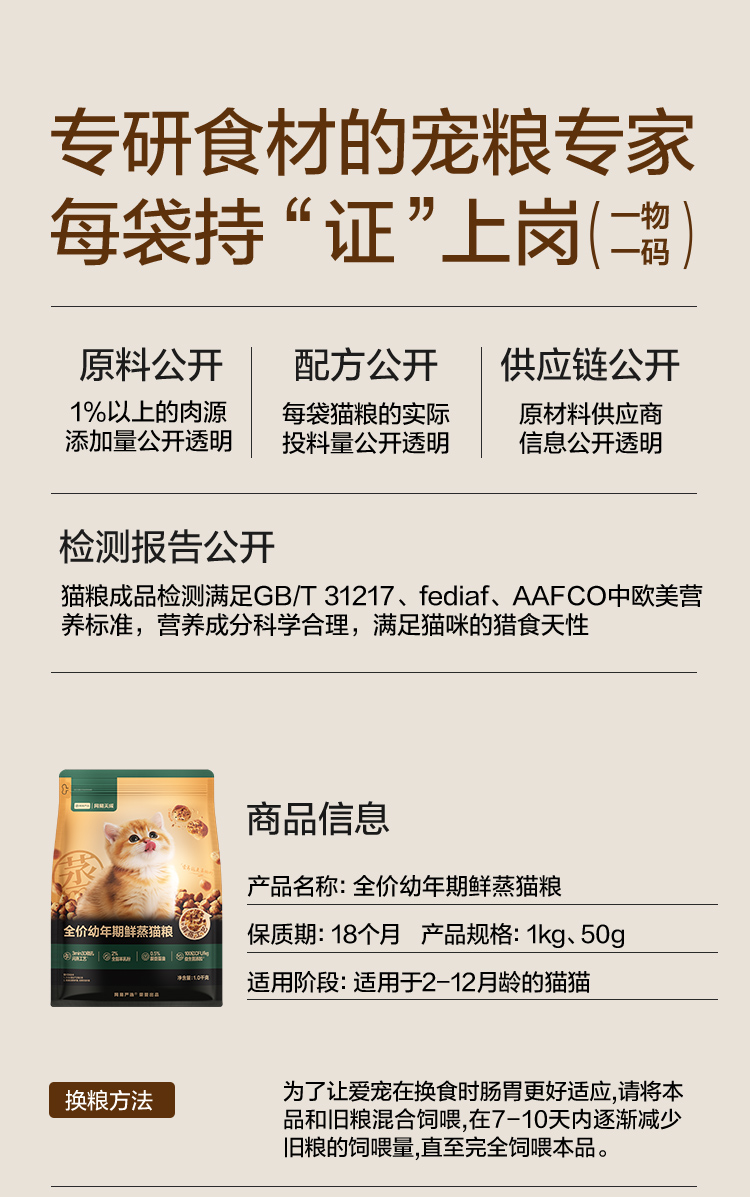 全价幼年期鲜蒸猫粮试吃装50g