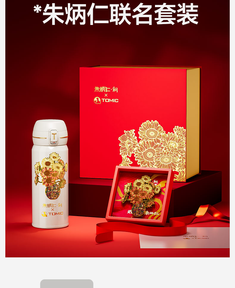 鎏光花影·燃烧的向日葵 抑菌 内外纯钛 400ml 朱炳仁联名套装精美礼盒 送礼 适配车载 一键开盖