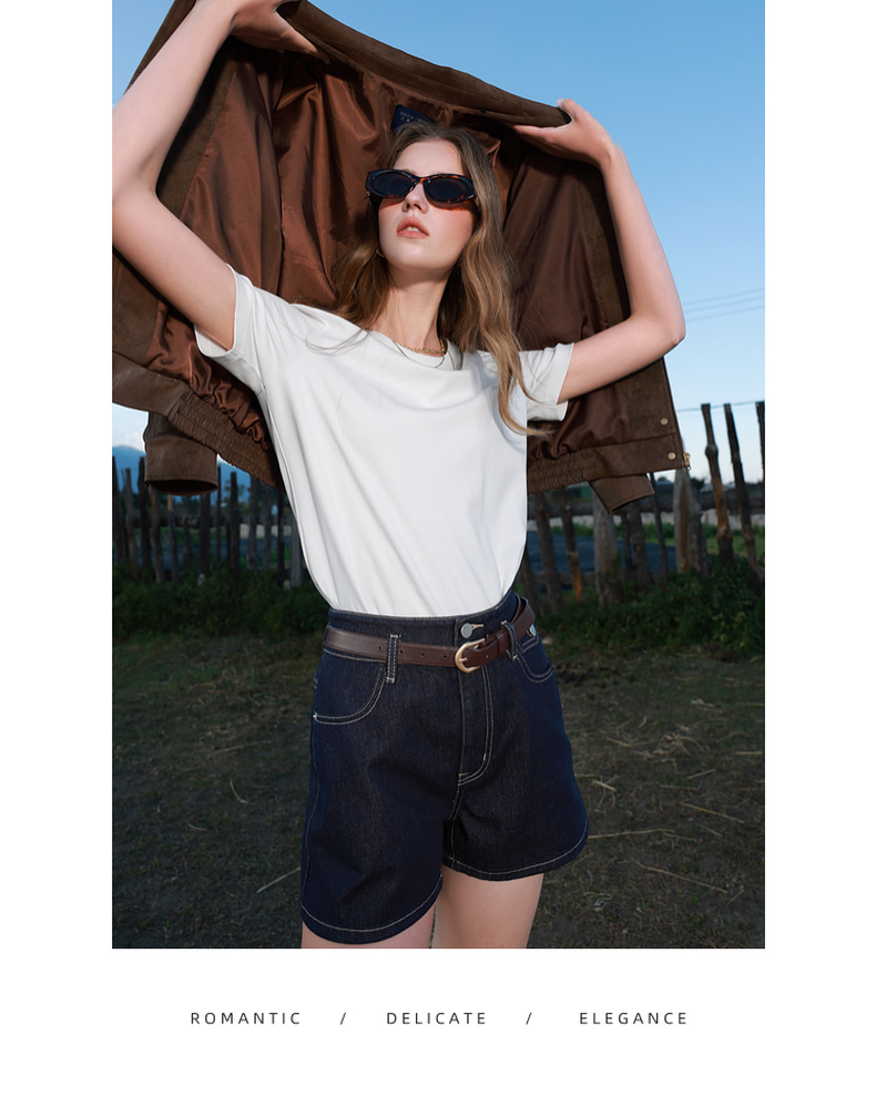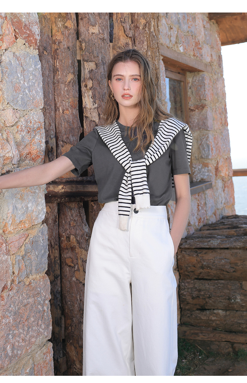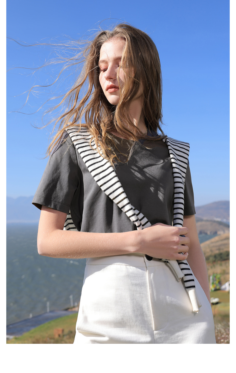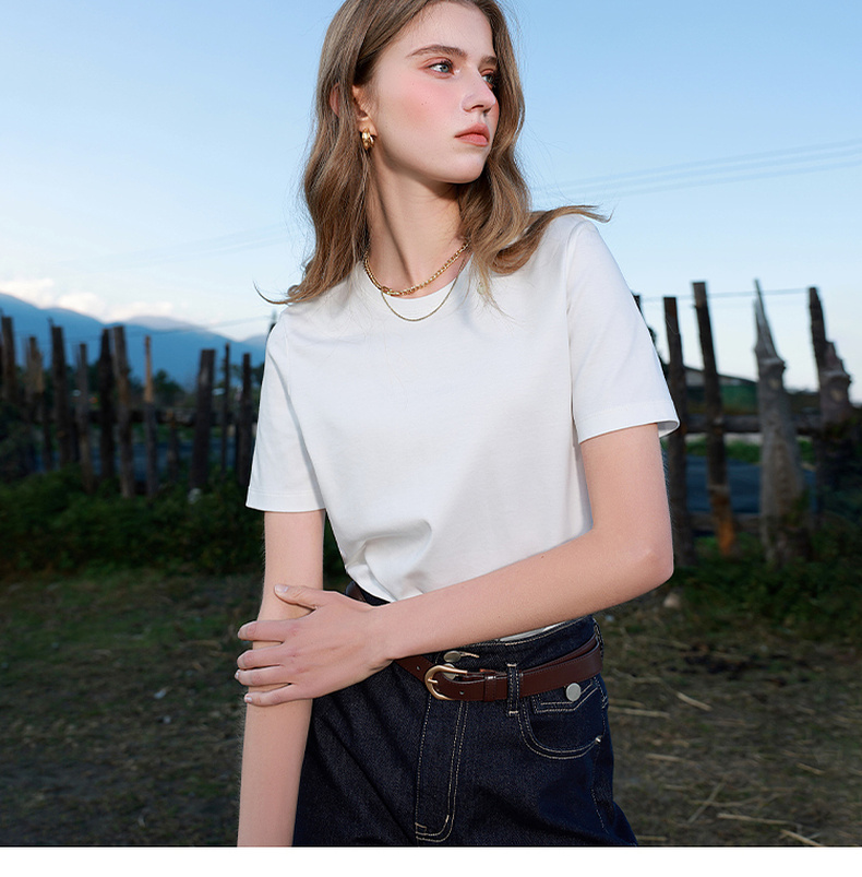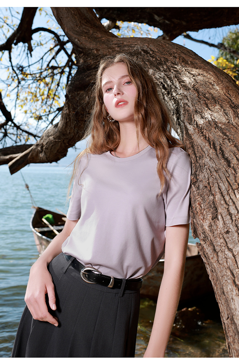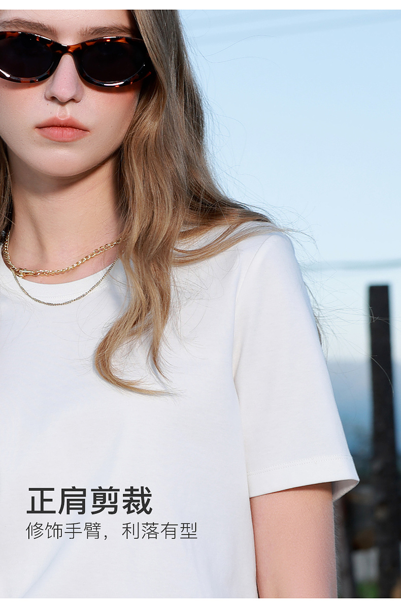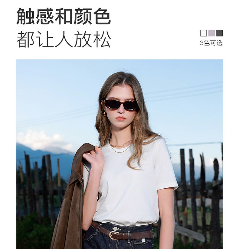 三彩2025春季新款圆领T恤正肩短袖上衣纯色基础套头衫休闲Z