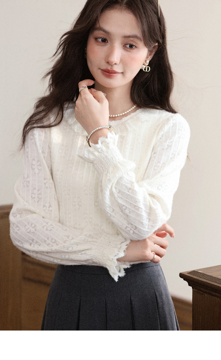 鹿向南「暖绒蕾丝」杏色法式蕾丝衬衫女秋季新款显瘦长袖内搭上衣