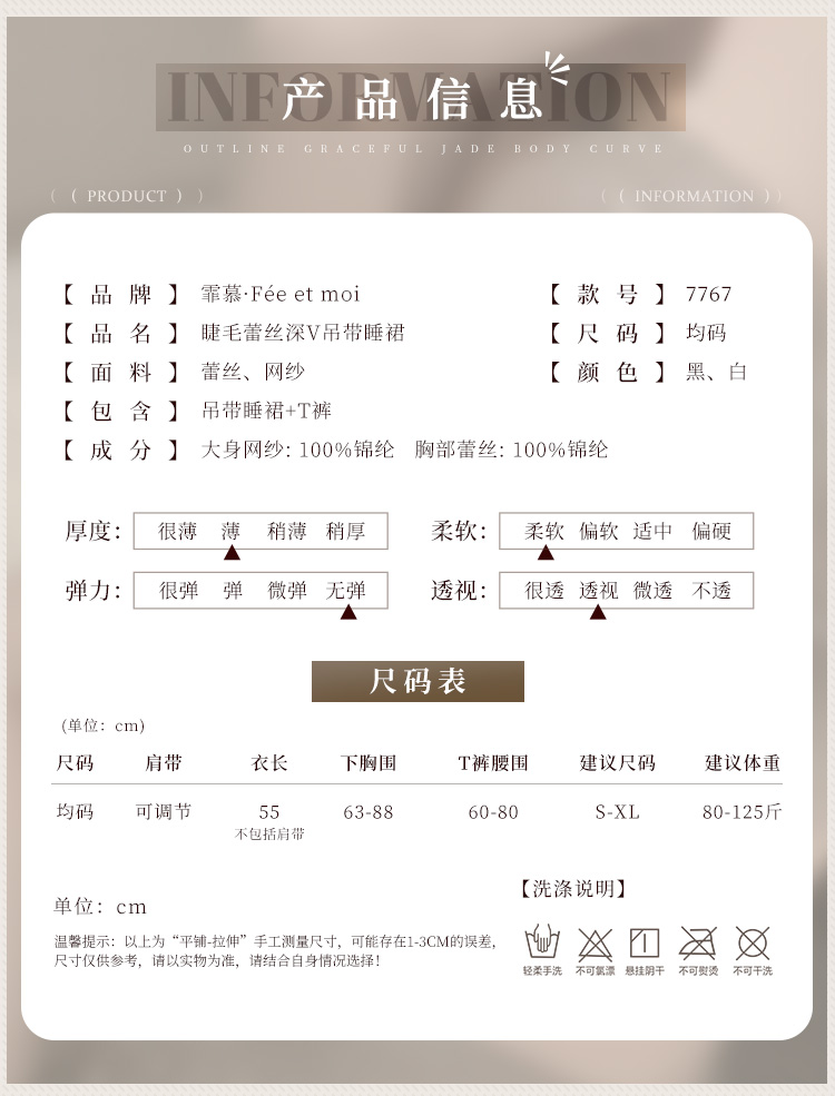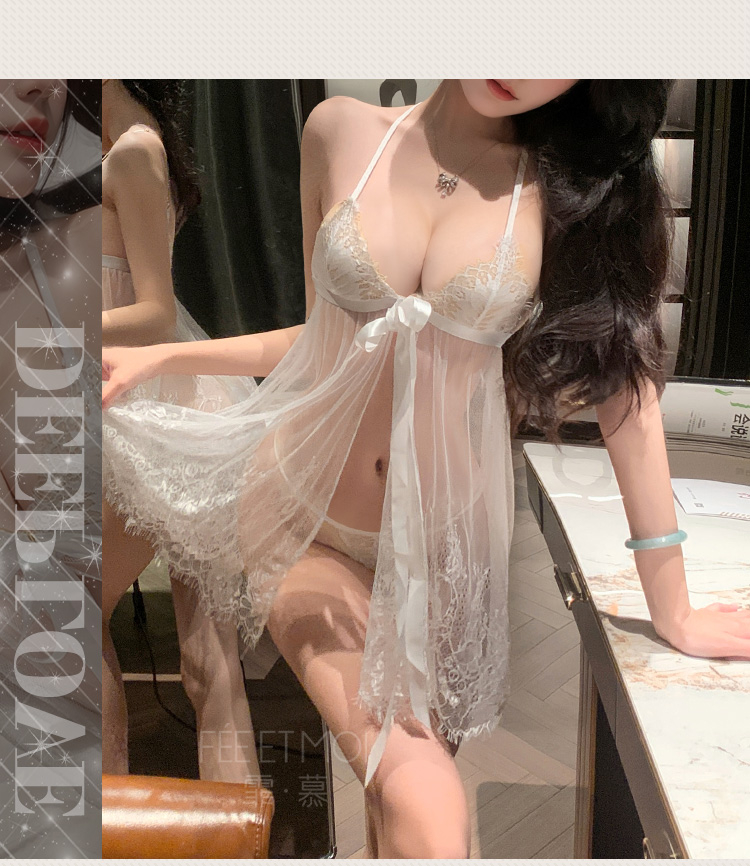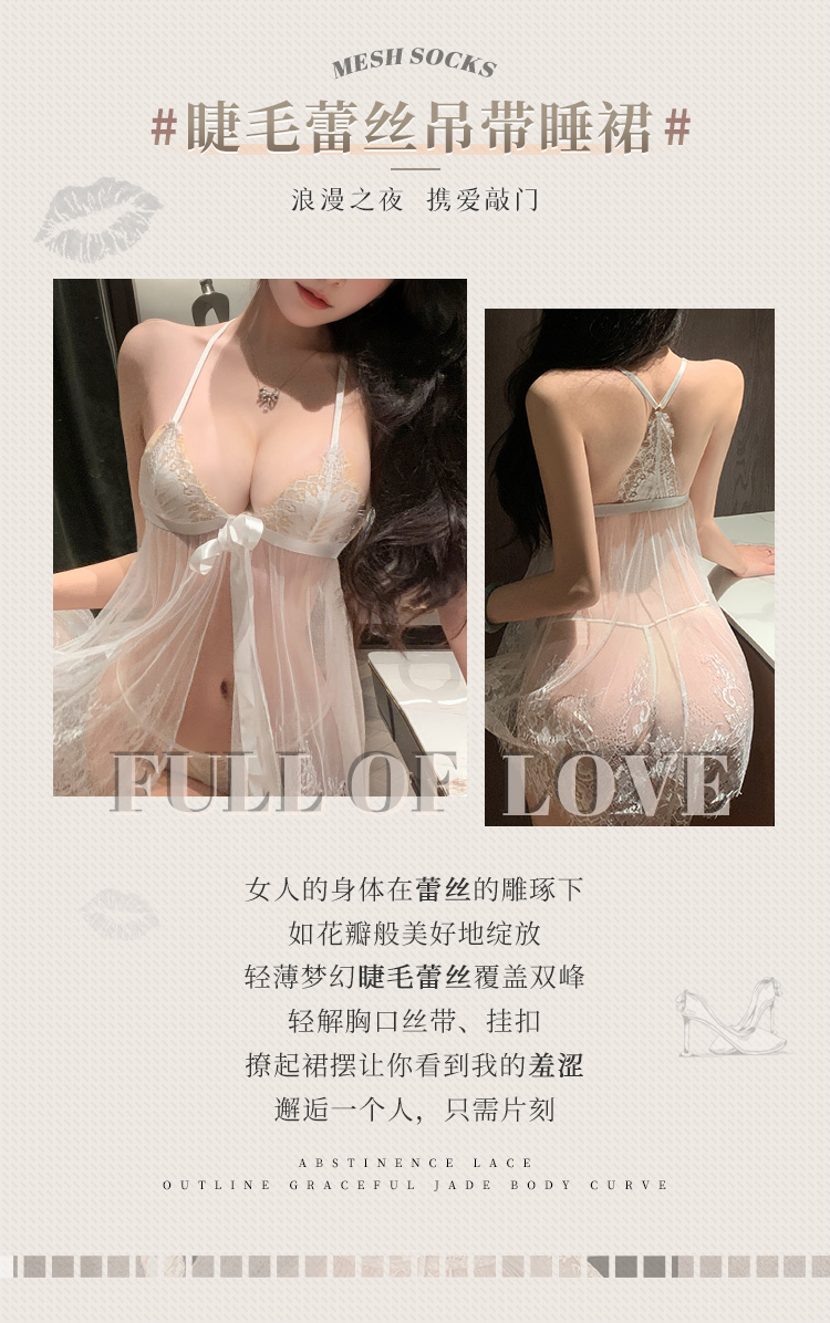 【情趣内衣】霏慕睫毛蕾丝深V吊带睡裙7767