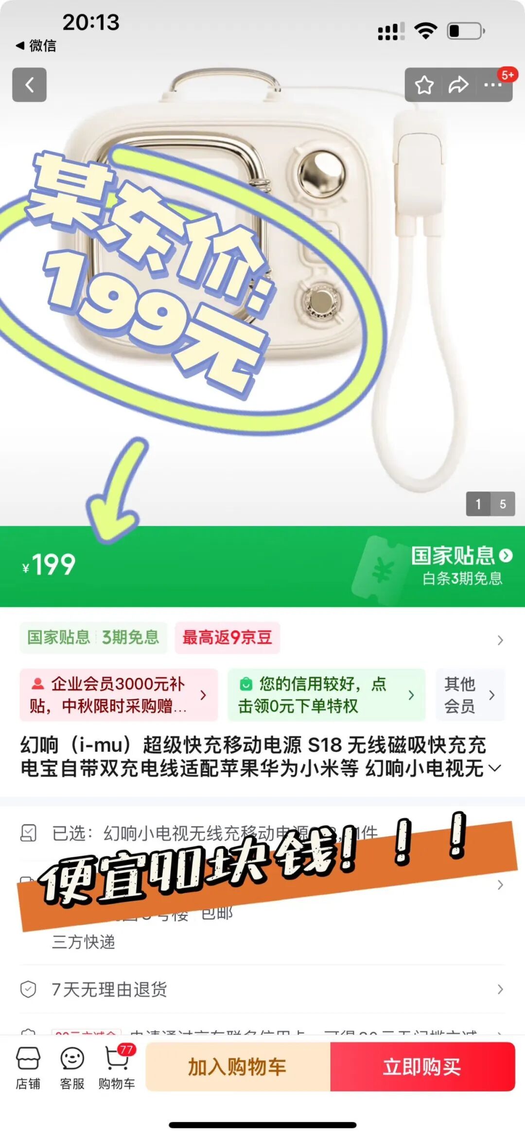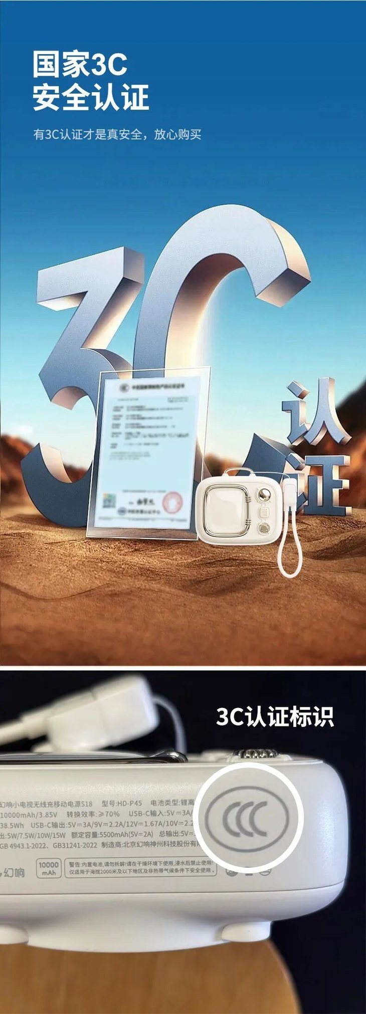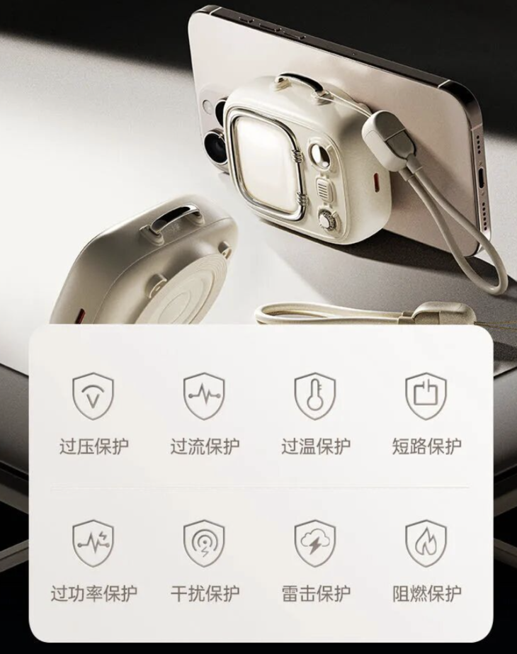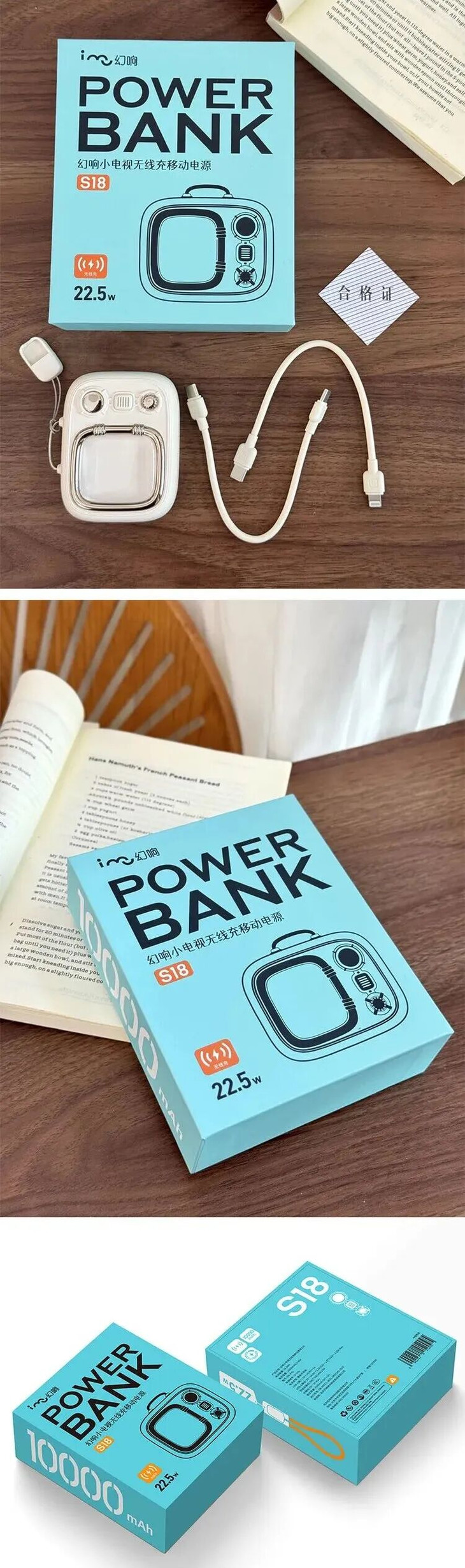 【3C认证】幻响·小电视无线充电宝,掌心般小巧,无线快充,边玩边充巨轻便!