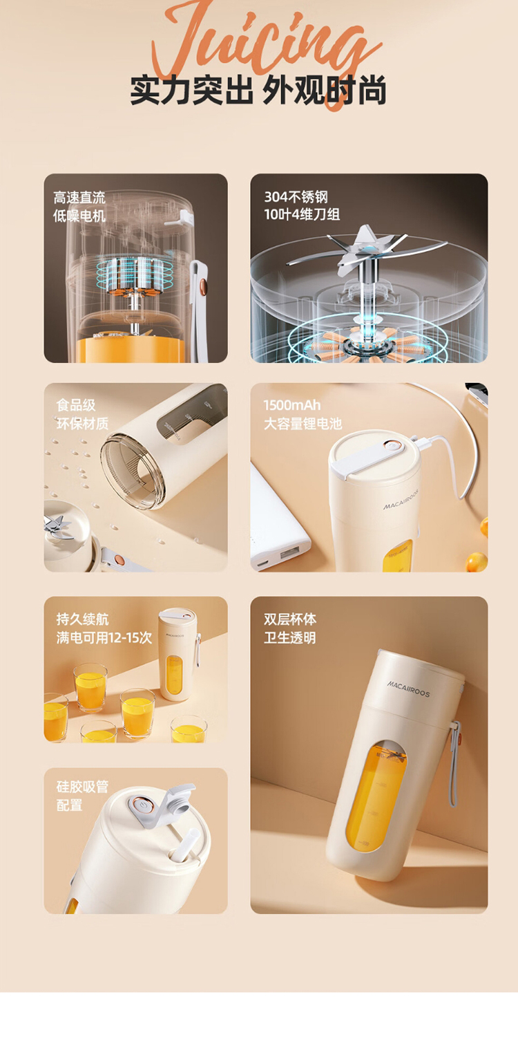 迈卡罗便携式充电果汁机MC-GZ041