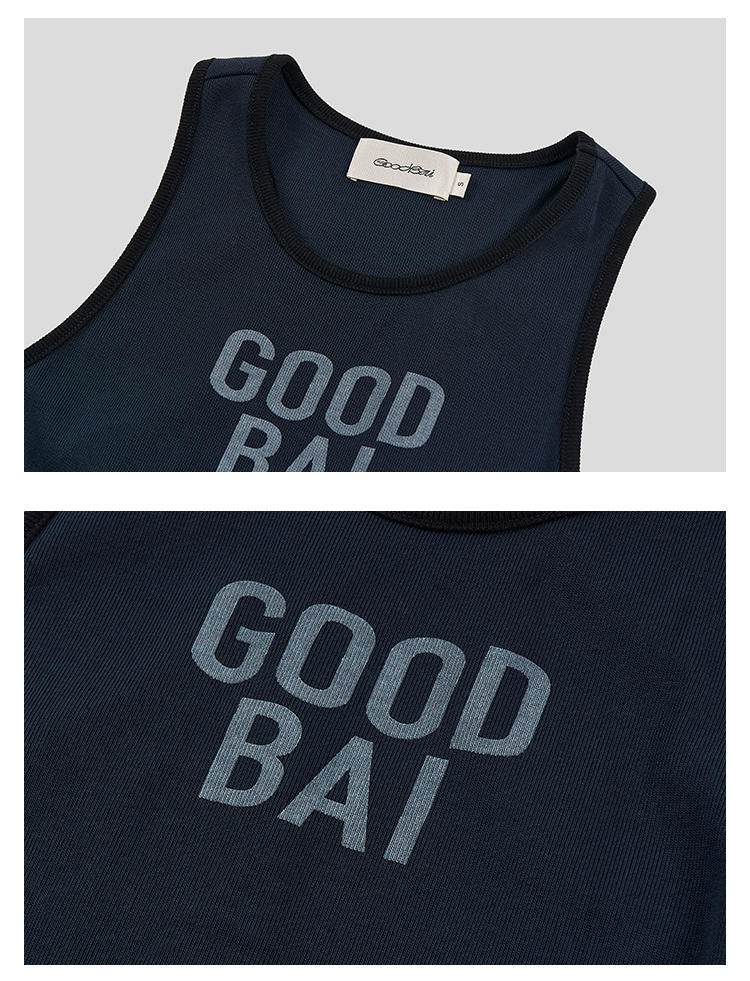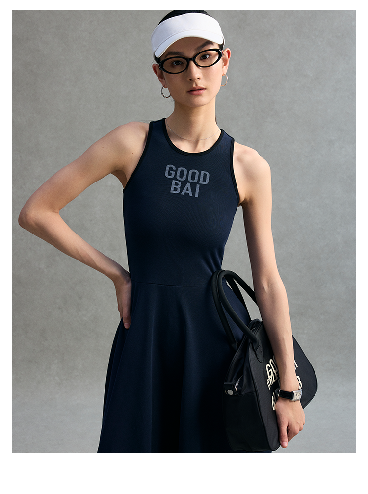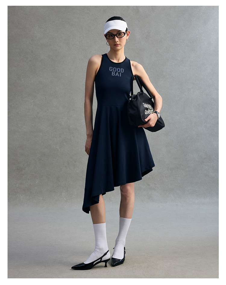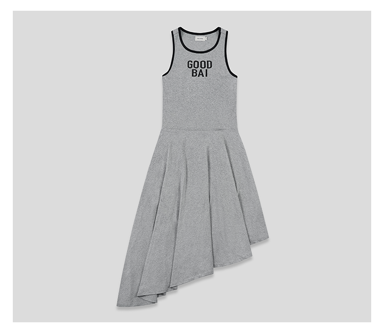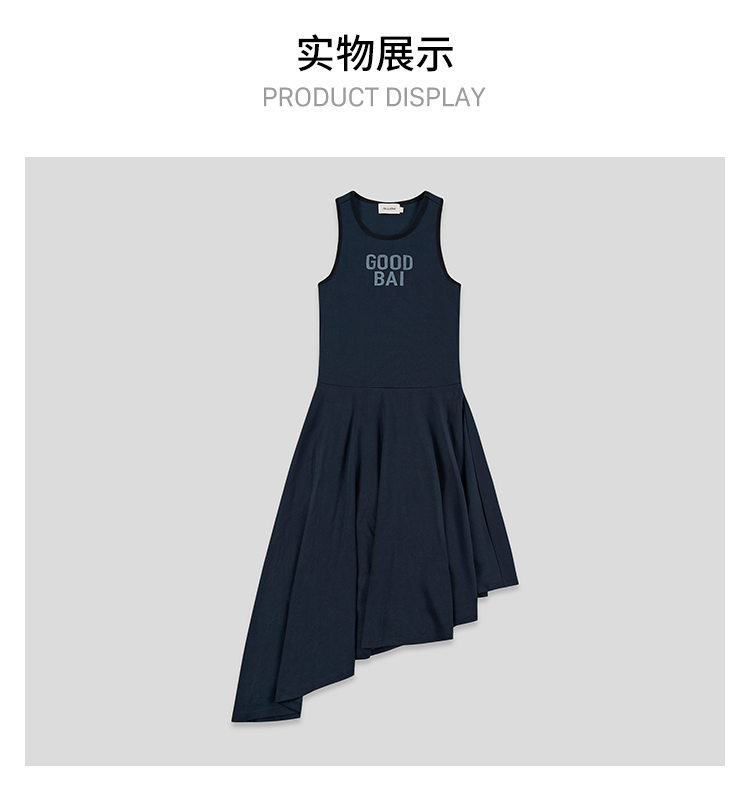 GOODBAI 粗体logo撞色印花拼接不规则下摆工字背心连衣裙