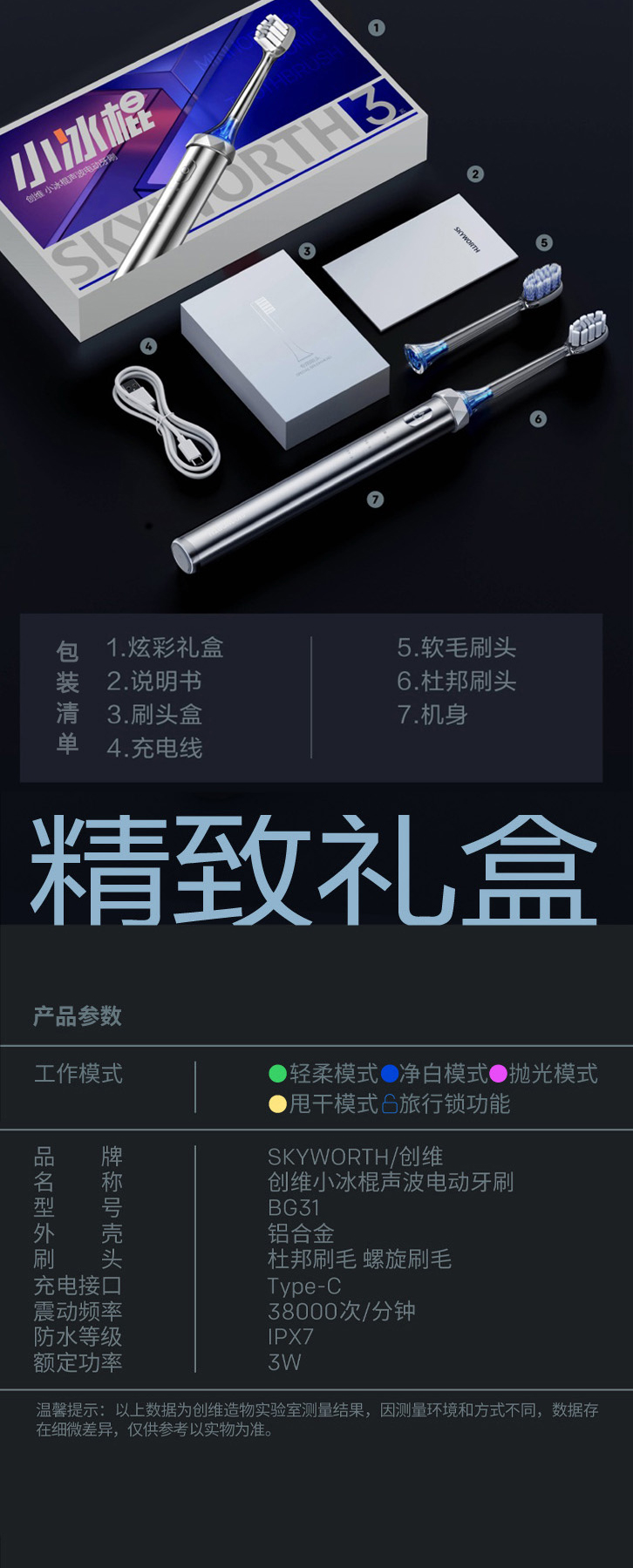 【创维】小冰棍电动牙刷 成人超声波电动牙刷 成人情侣款男女士通用