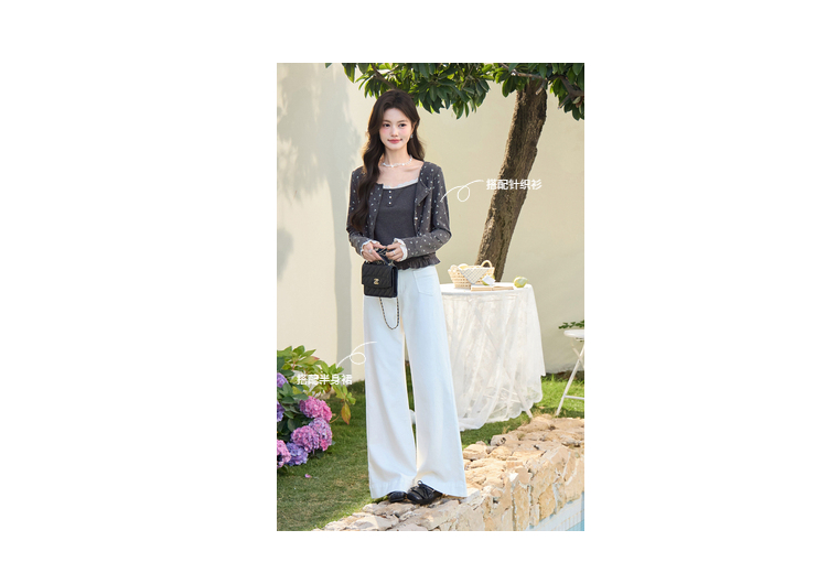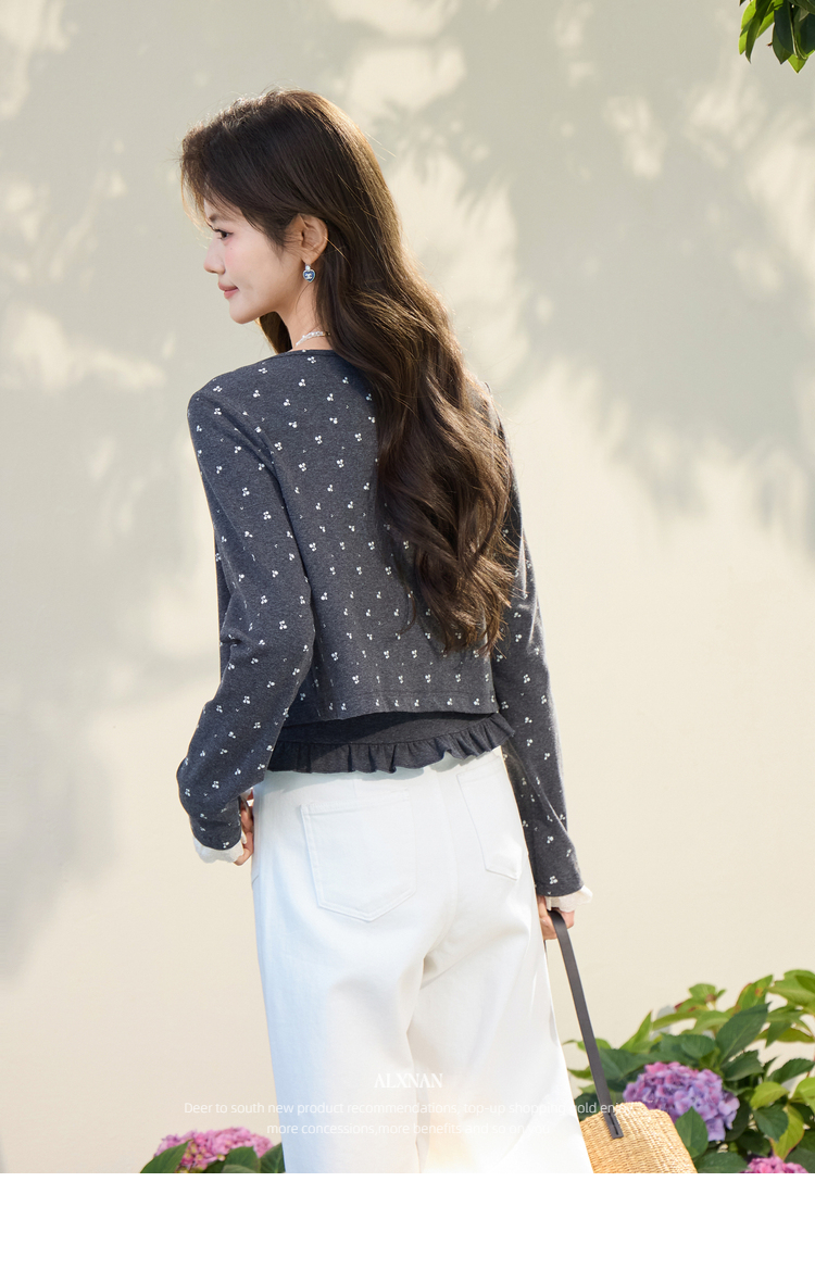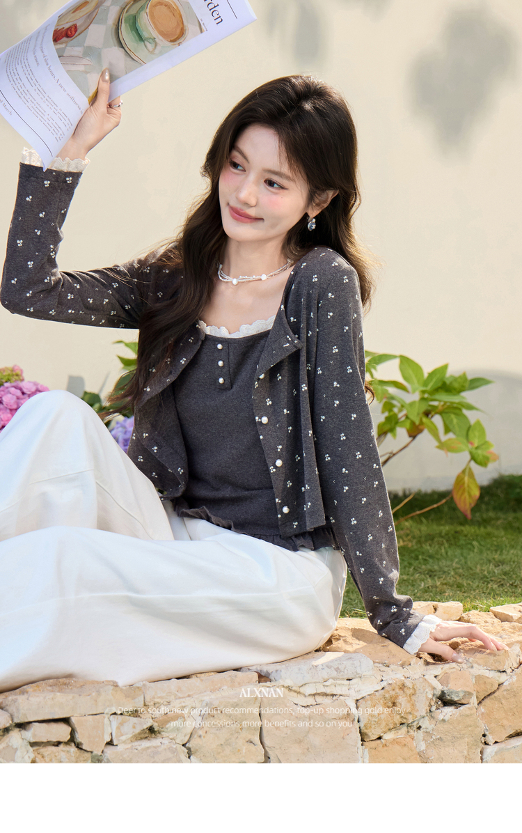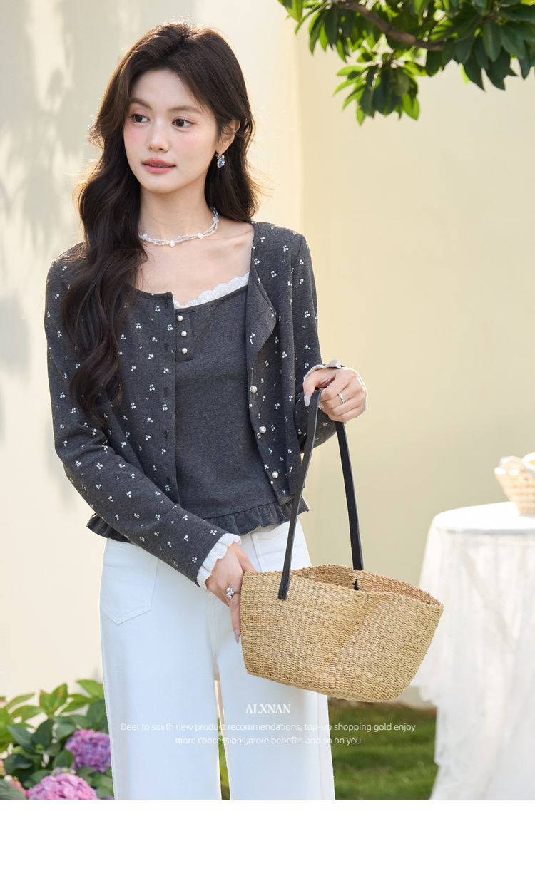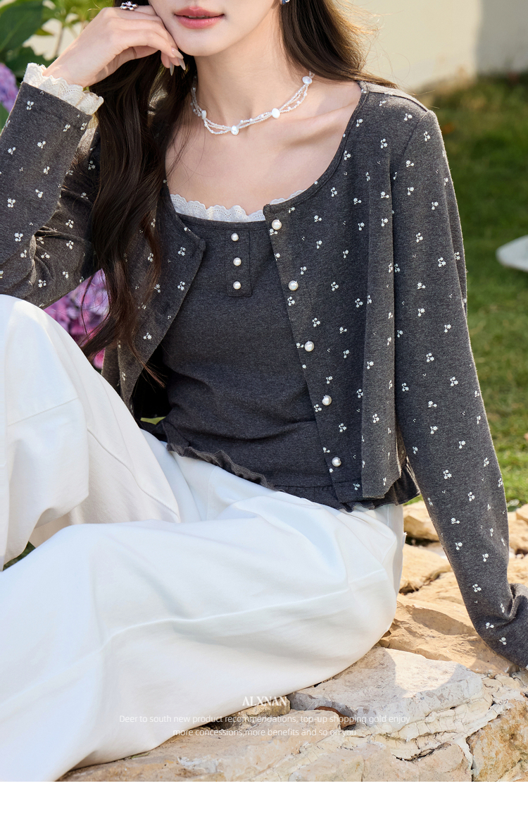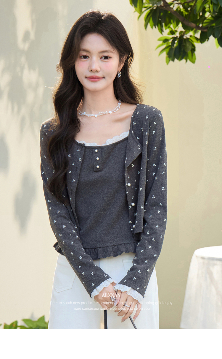 鹿向南「柔软糖心」蕾丝领荷叶边灰色背心吊带女春季内搭打底上衣