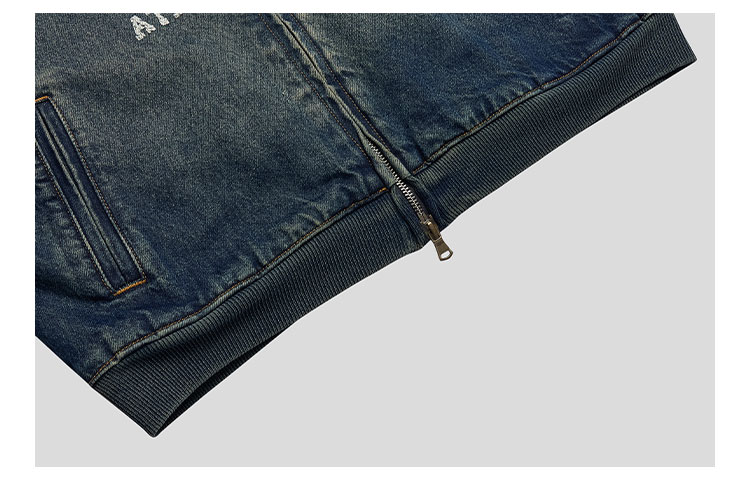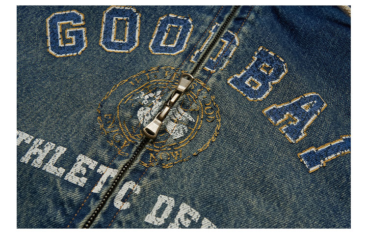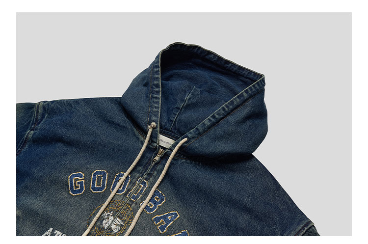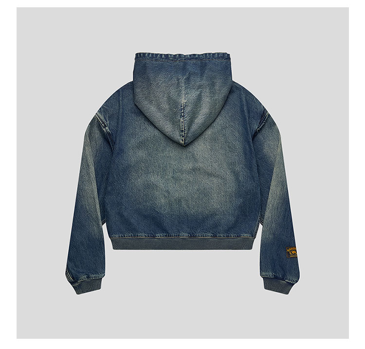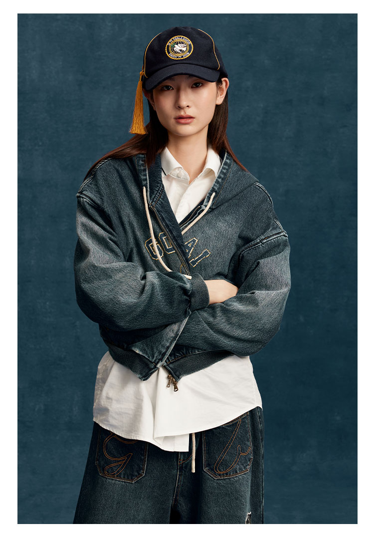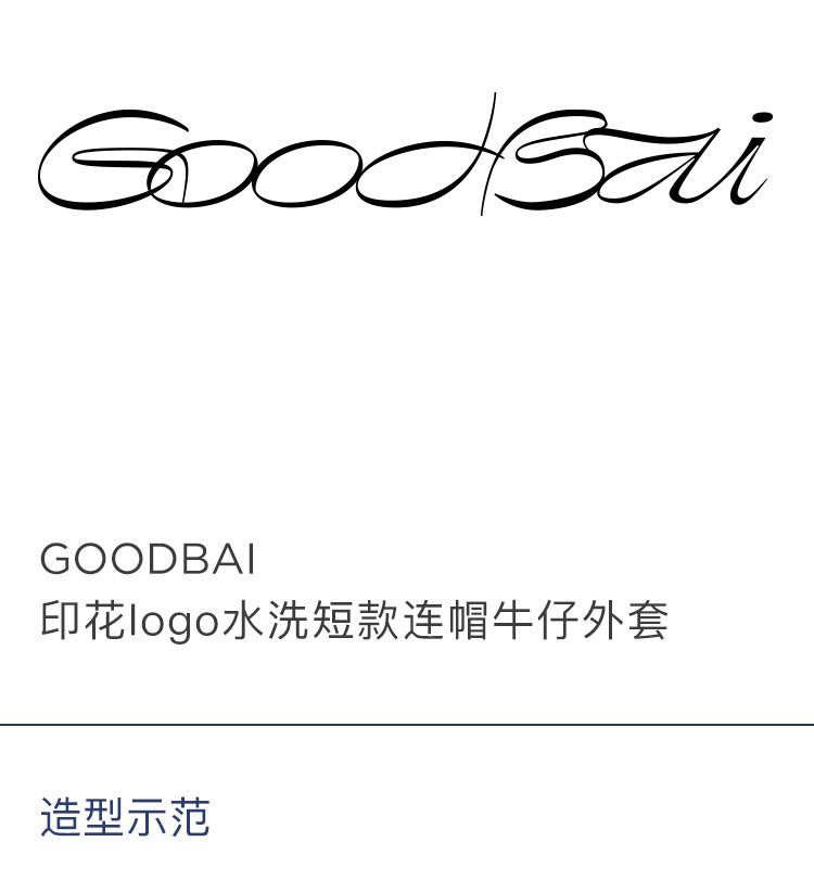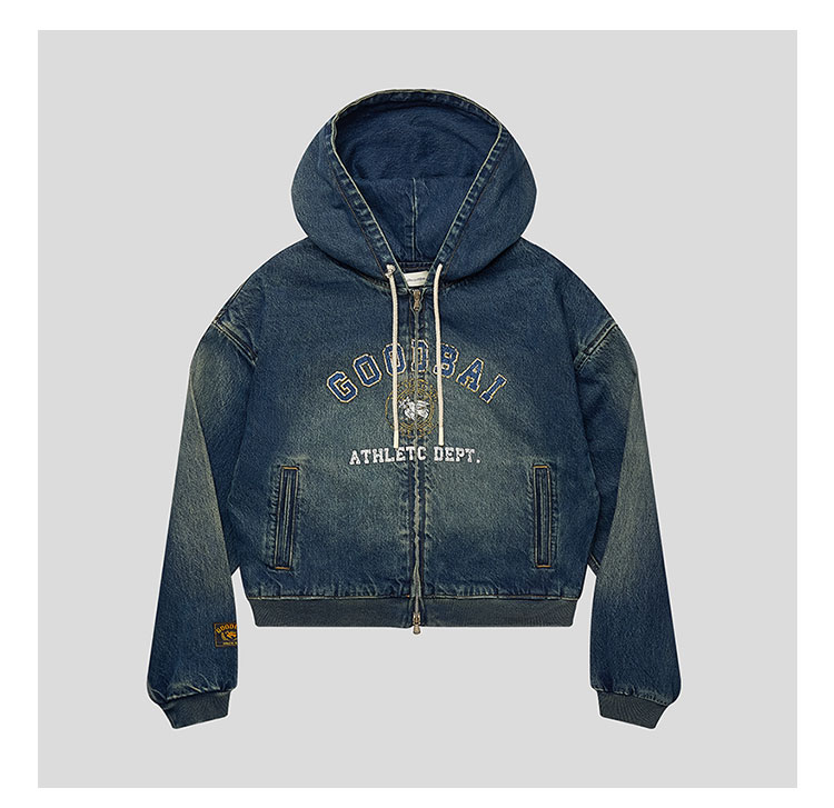 GOODBAI印花logo水洗短款连帽牛仔外套