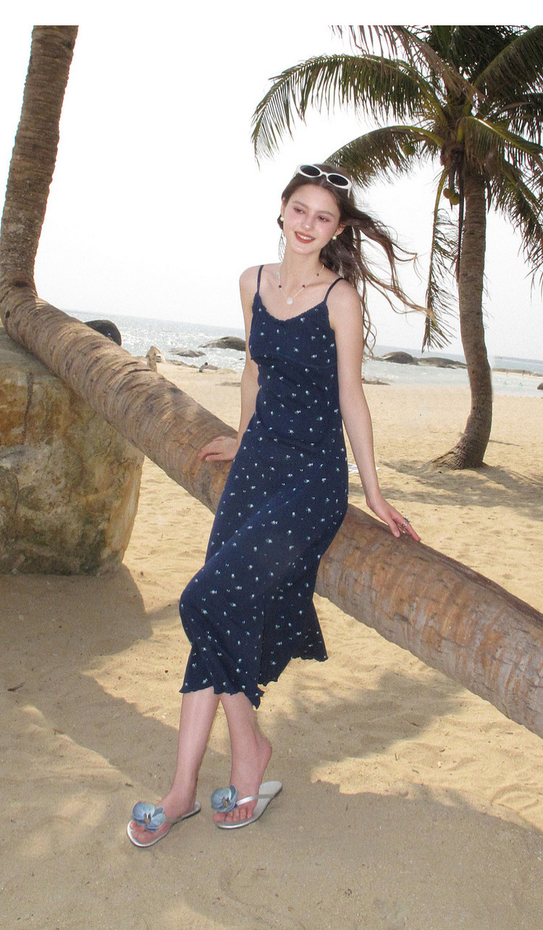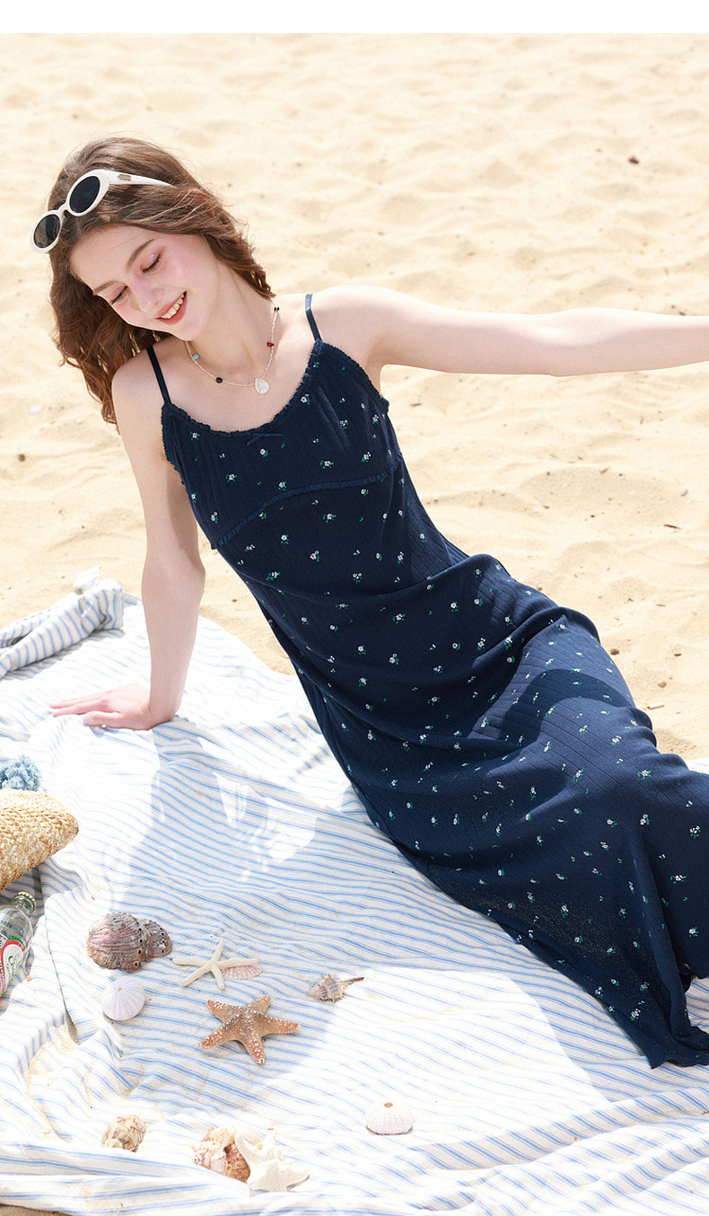 【100棉】三彩独醒2026夏季新款碎花吊带连衣裙A字裙长裙度假F