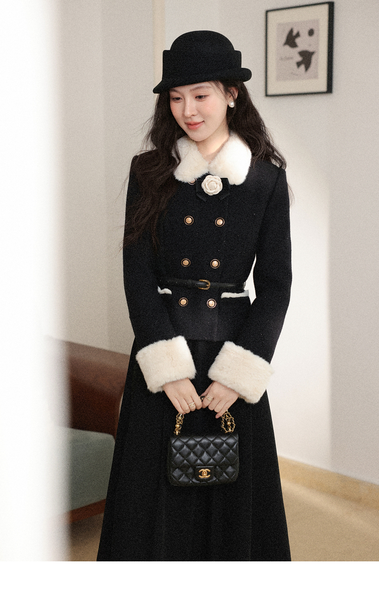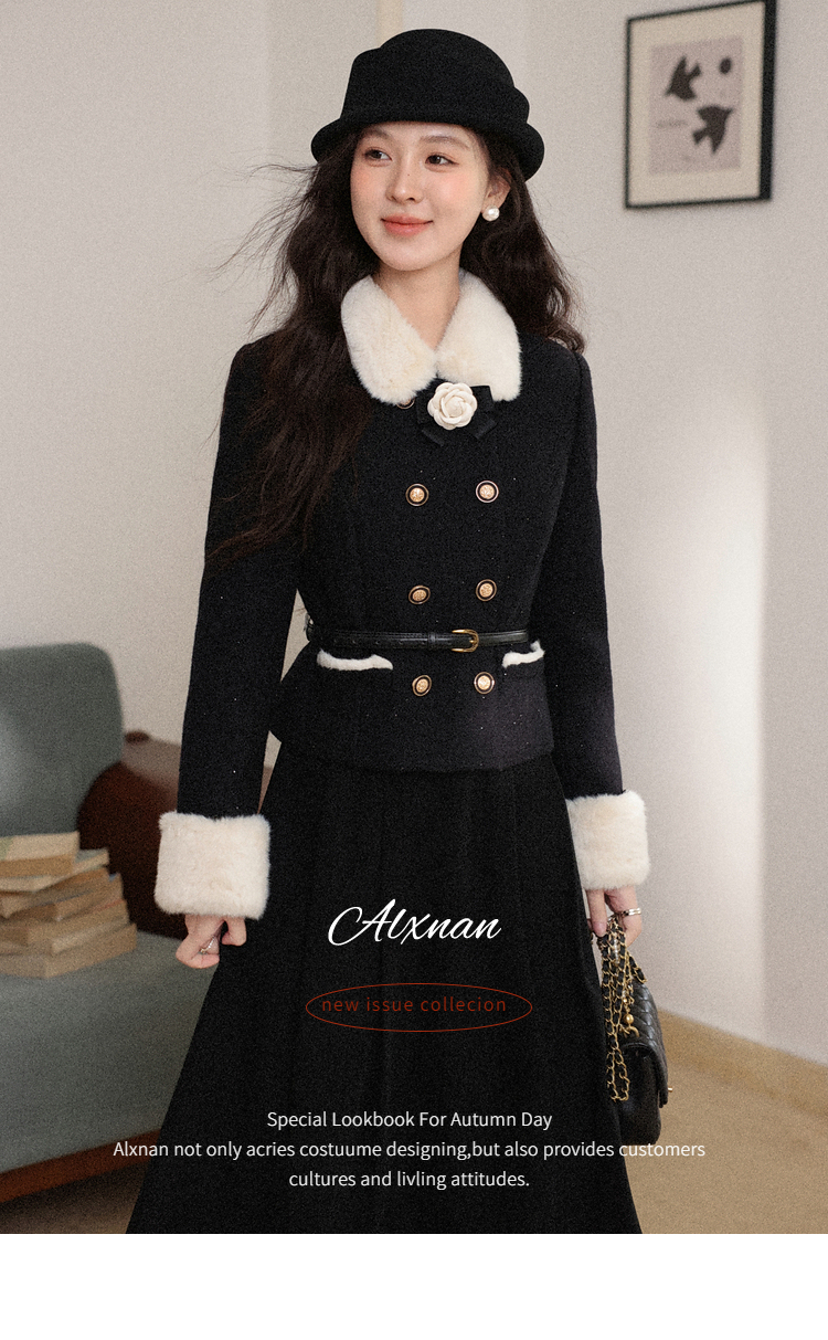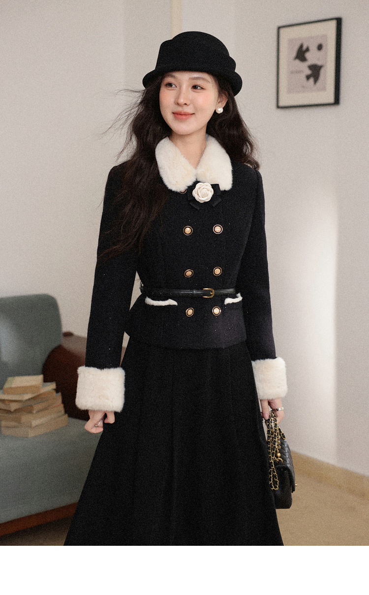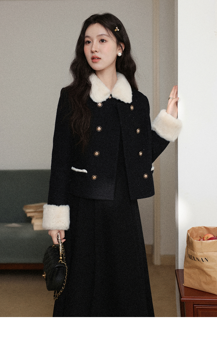 鹿向南「雅黑山茶」法式小香风黑色短外套女秋冬季显瘦高级感上衣