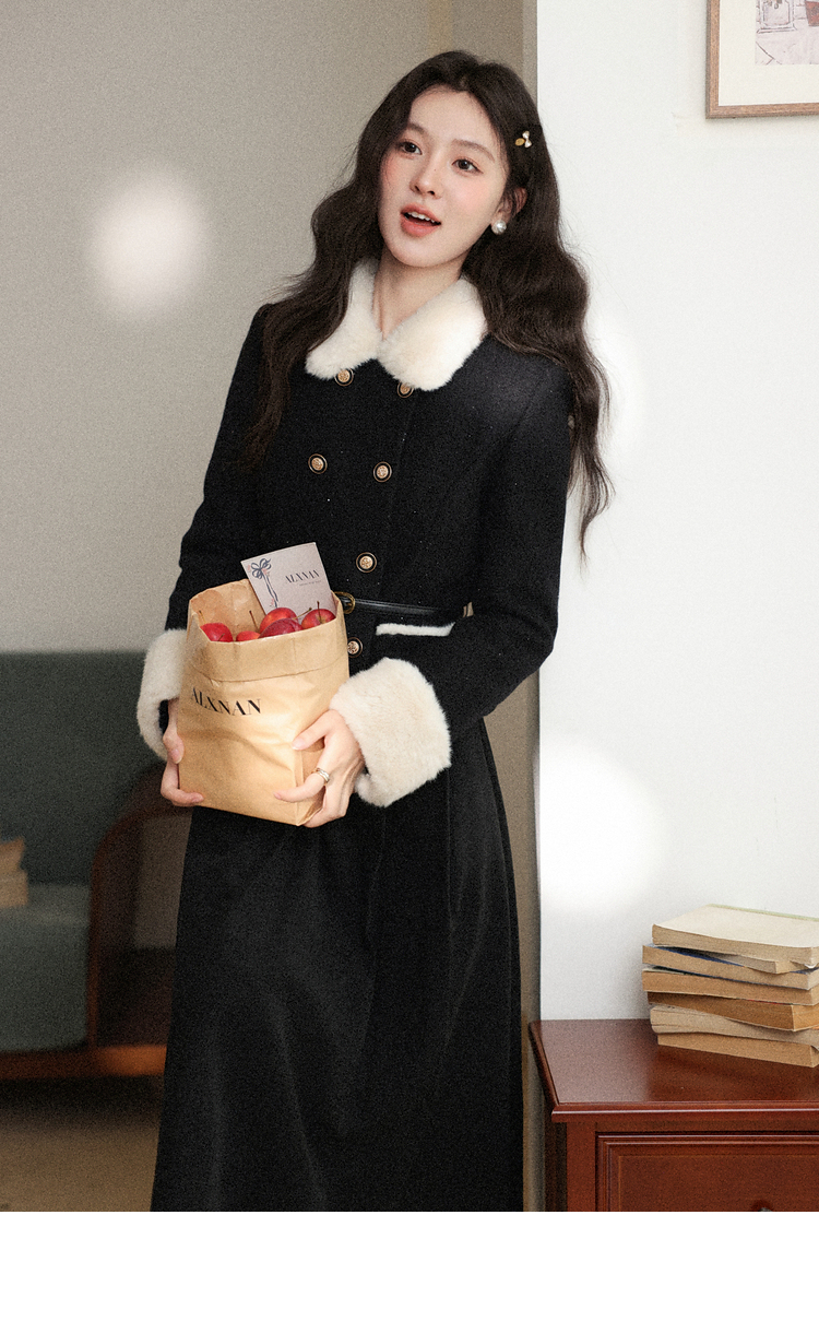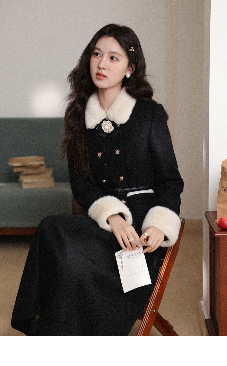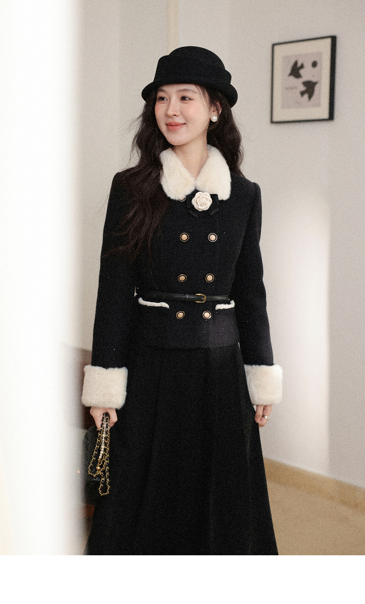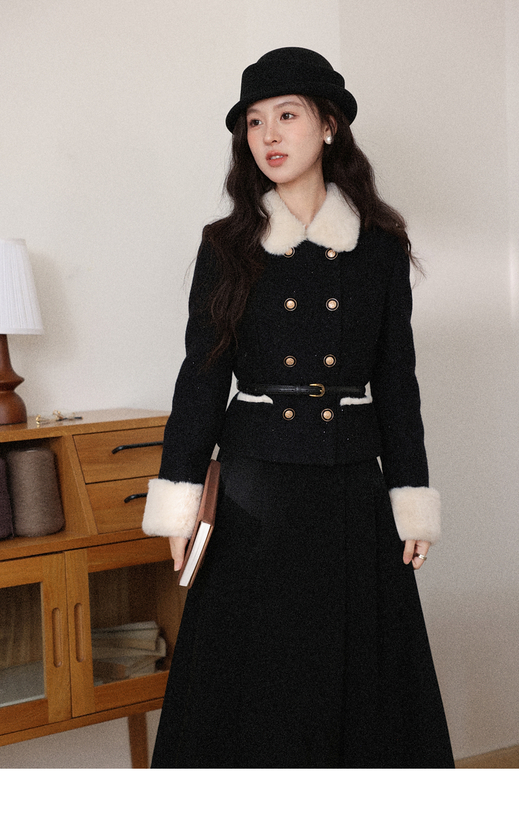 鹿向南「雅黑山茶」法式小香风黑色短外套女秋冬季显瘦高级感上衣