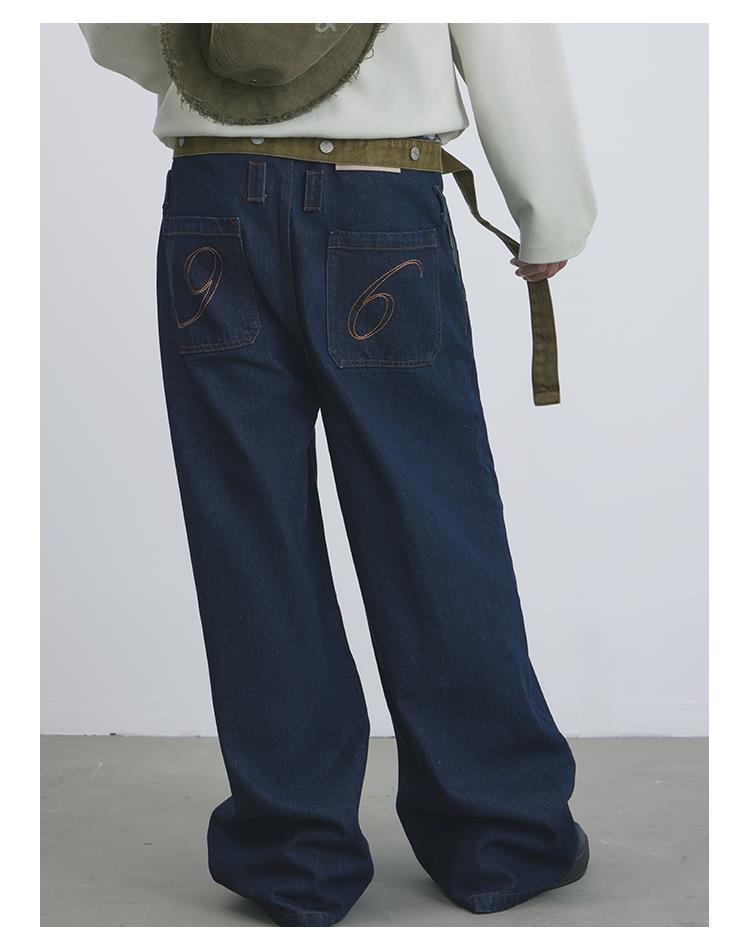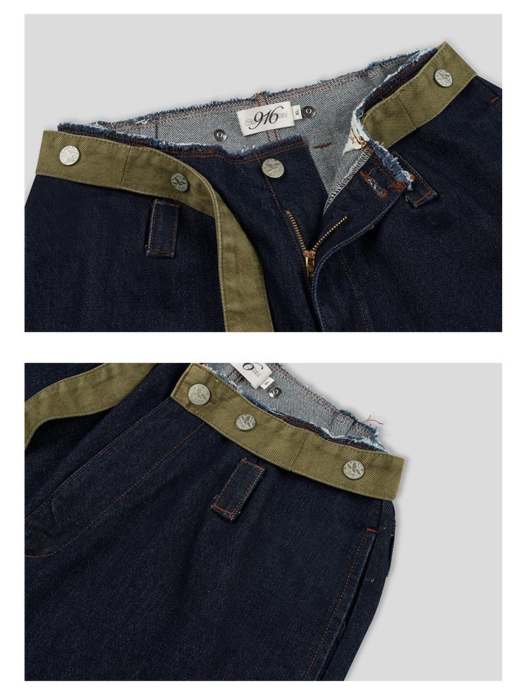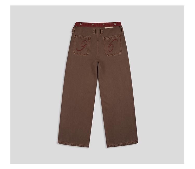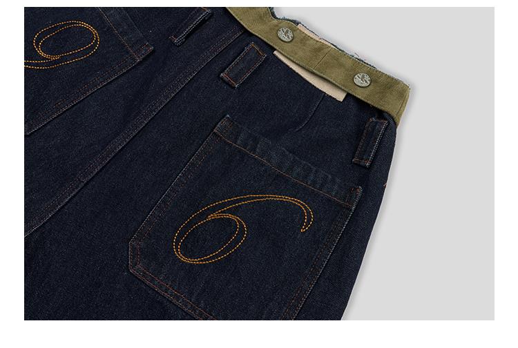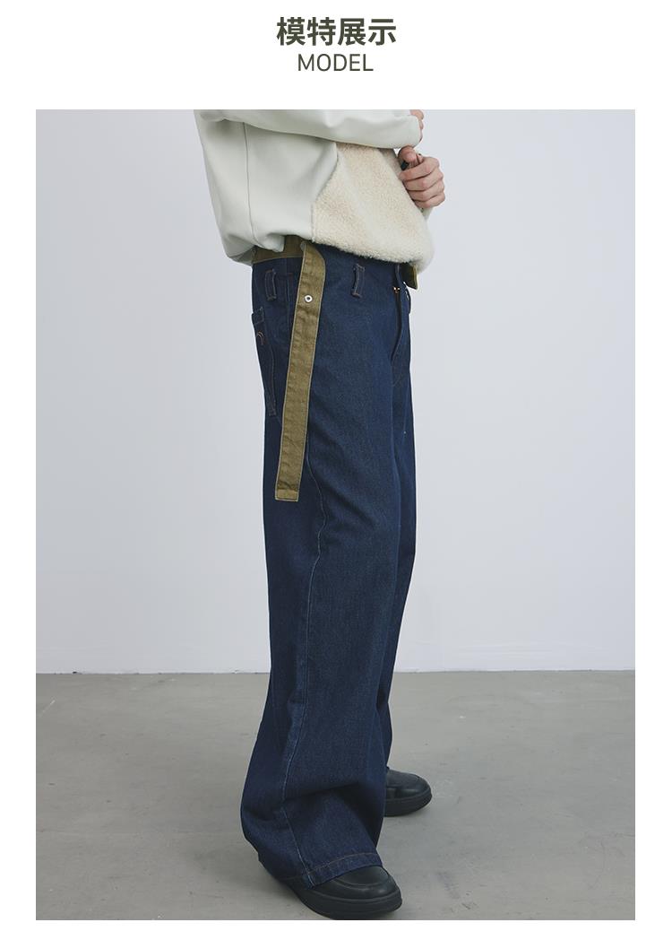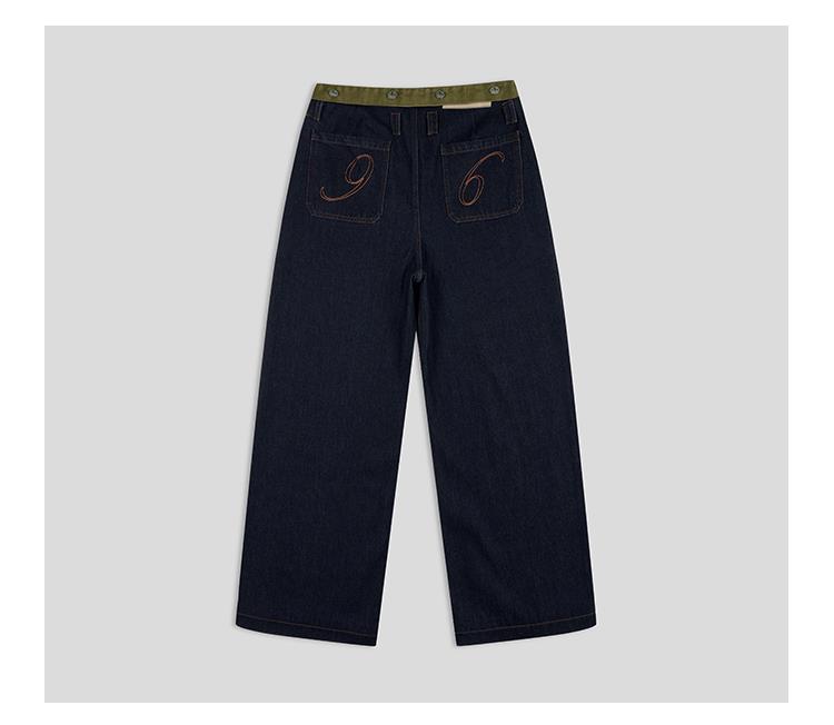 GOODBAI 916 logo绣花腰带可拆水洗撞色直筒牛仔裤