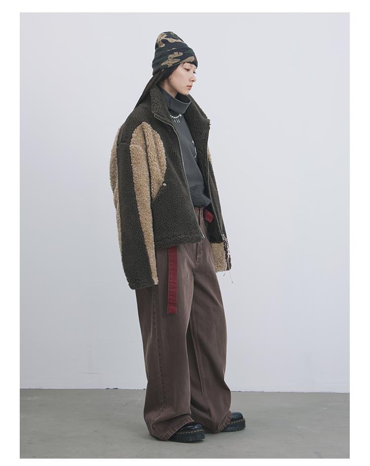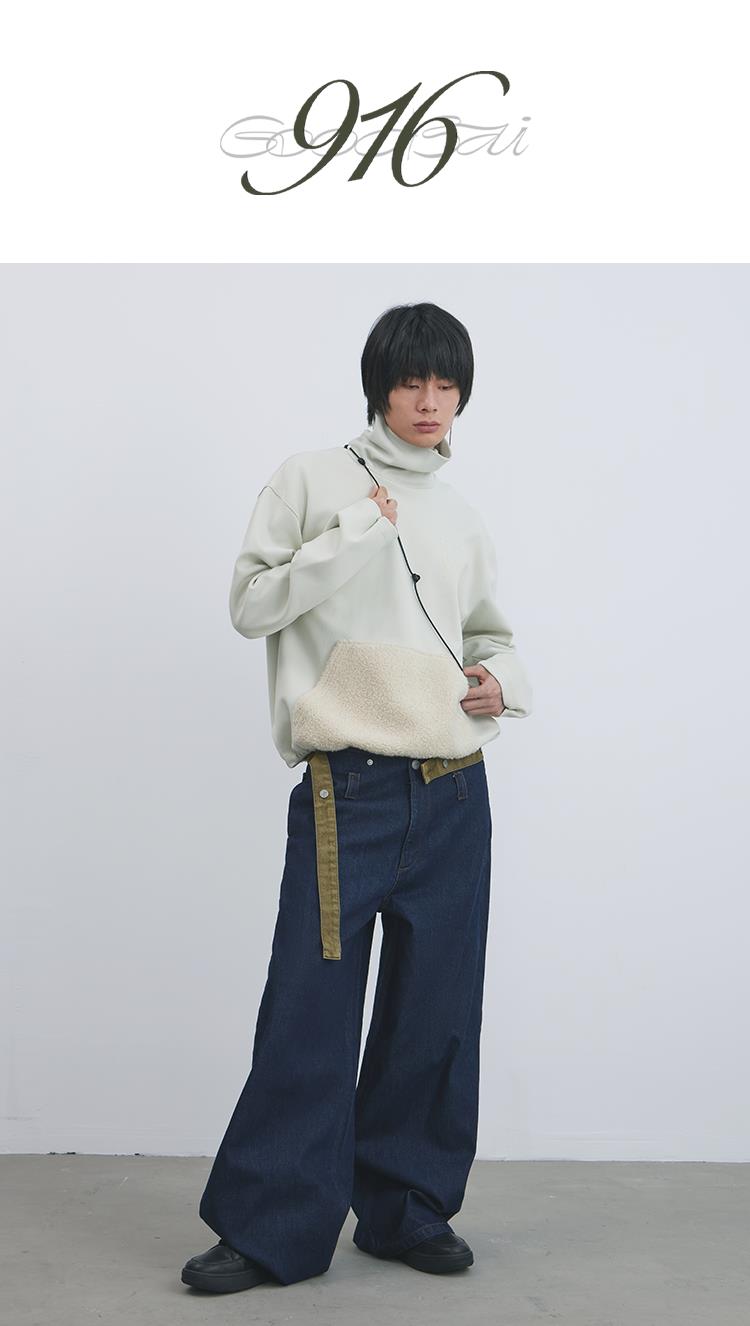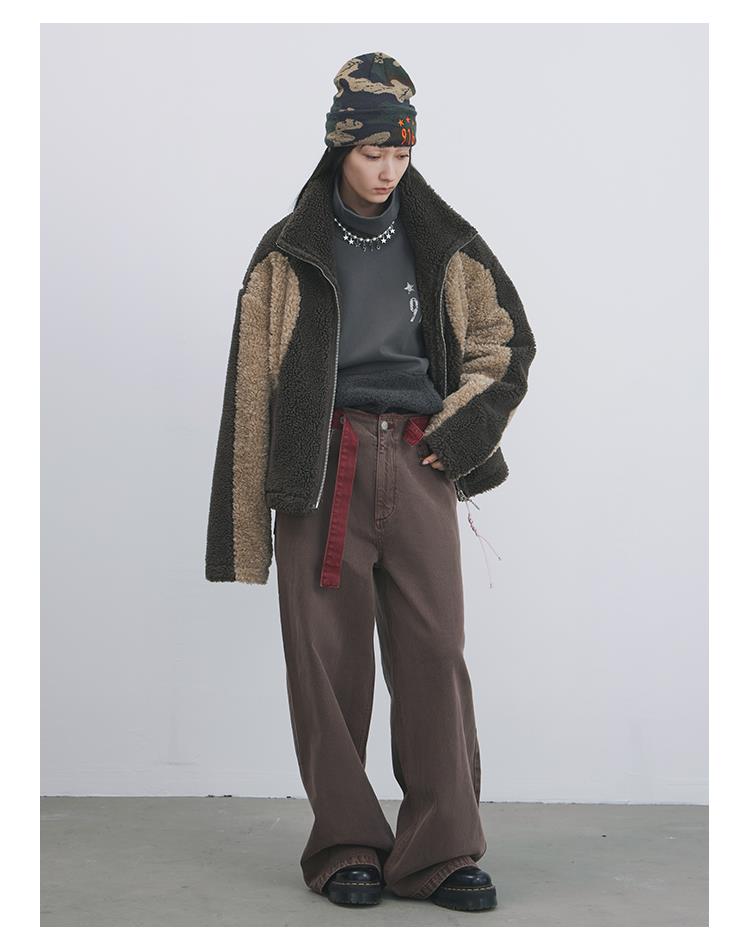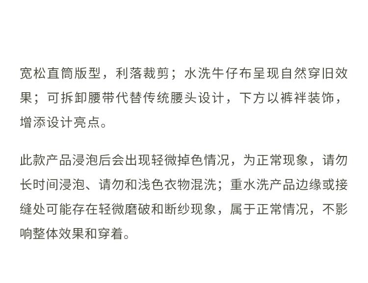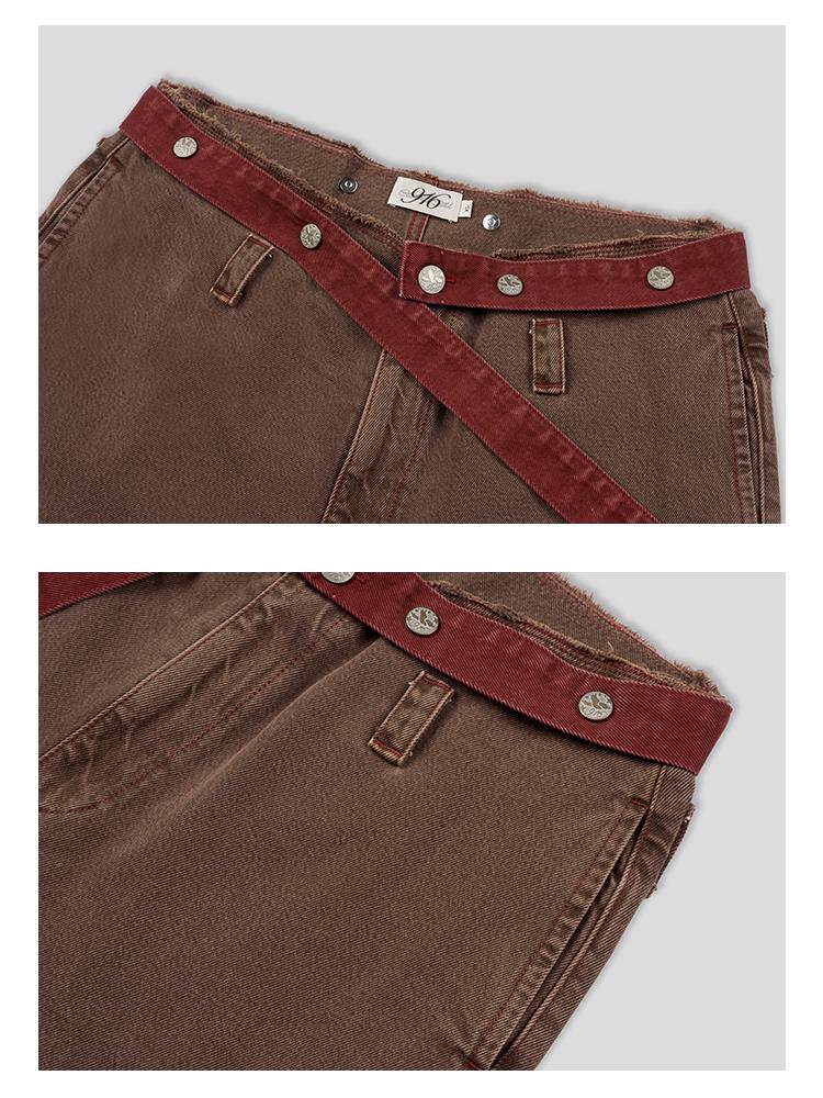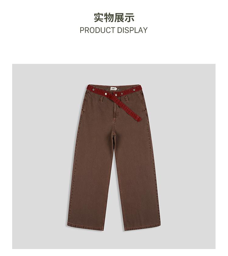 GOODBAI 916 logo绣花腰带可拆水洗撞色直筒牛仔裤