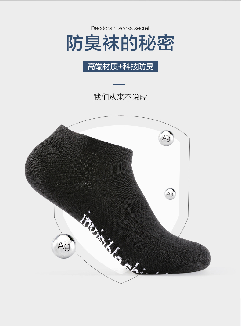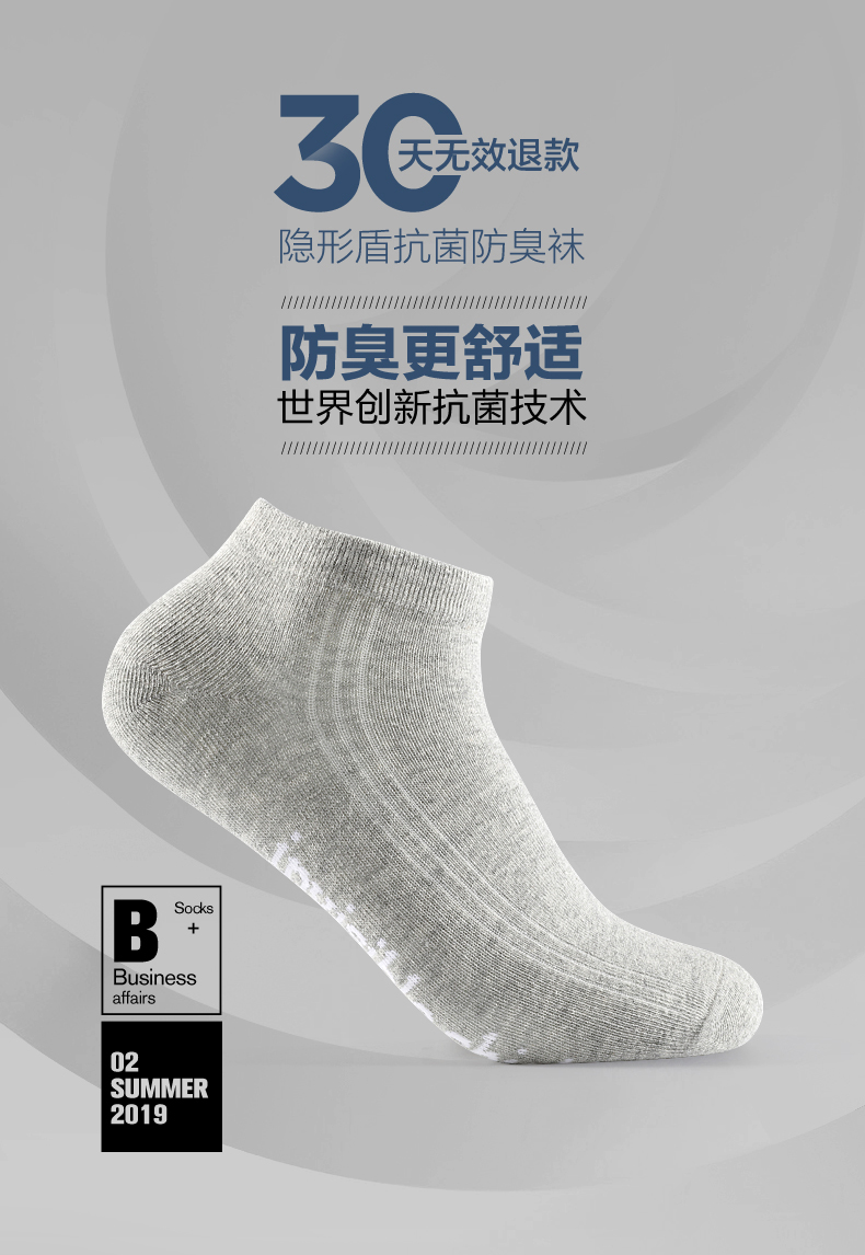 隐形盾 抗菌防臭薄款男士商务绅士吸汗透气袜子6双装