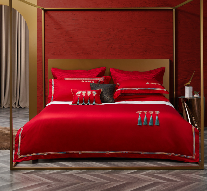 恐龙XX 【幸福来临】60S全棉缎纹婚庆四件套(线下专柜同款)