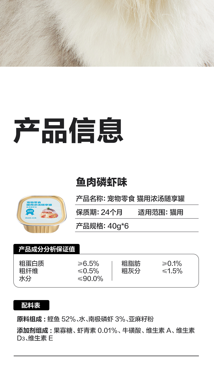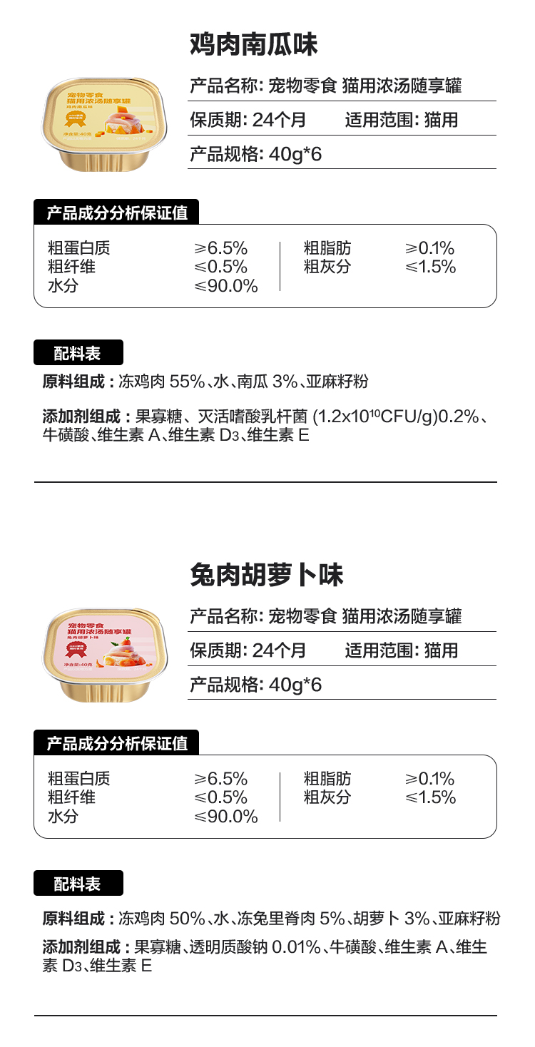 猫用浓汤随享罐40g*6罐,一餐一罐不浪费
