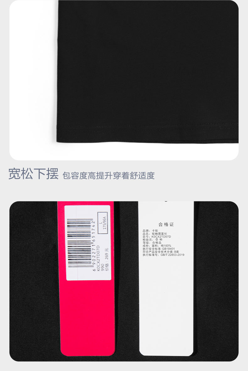 kappa卡帕短袖情侣男女印花T恤运动半袖休闲图案衫K0CX2TD07D