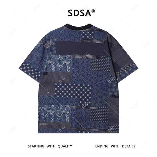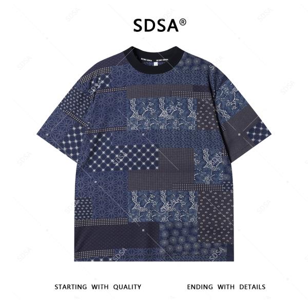 T3981夏季高级感新款男士美式撞色暗纹提花短袖T恤宽松潮流圆领上衣