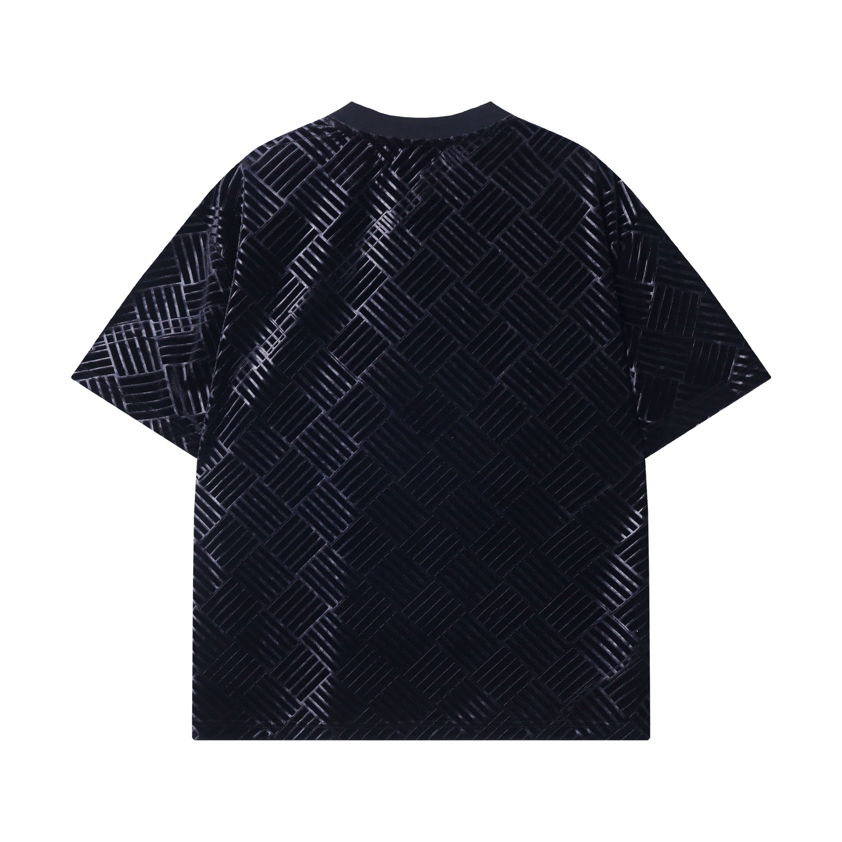 T2410夏季新款时尚个性韩版纯色绒面格子条纹圆领短袖T恤潮流百搭上衣