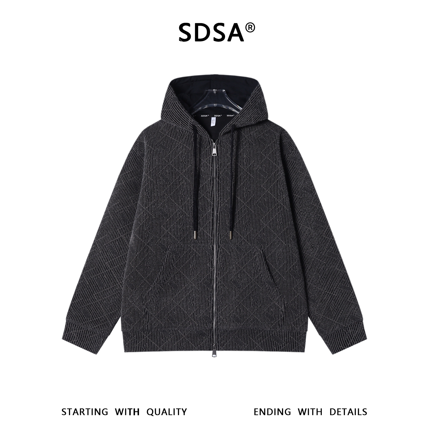SDSA男士秋冬新款痞帅男装时尚绒毛线条竖纹拉链连帽卫衣百搭宽松