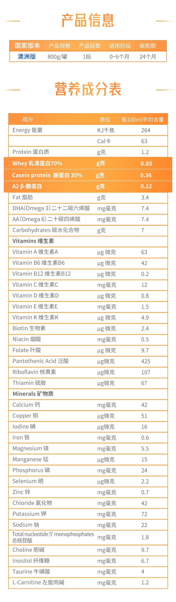 【品牌直供】澳版NAN雀巢能恩全护A2婴幼儿配方奶粉 1段 0-6个月 800g