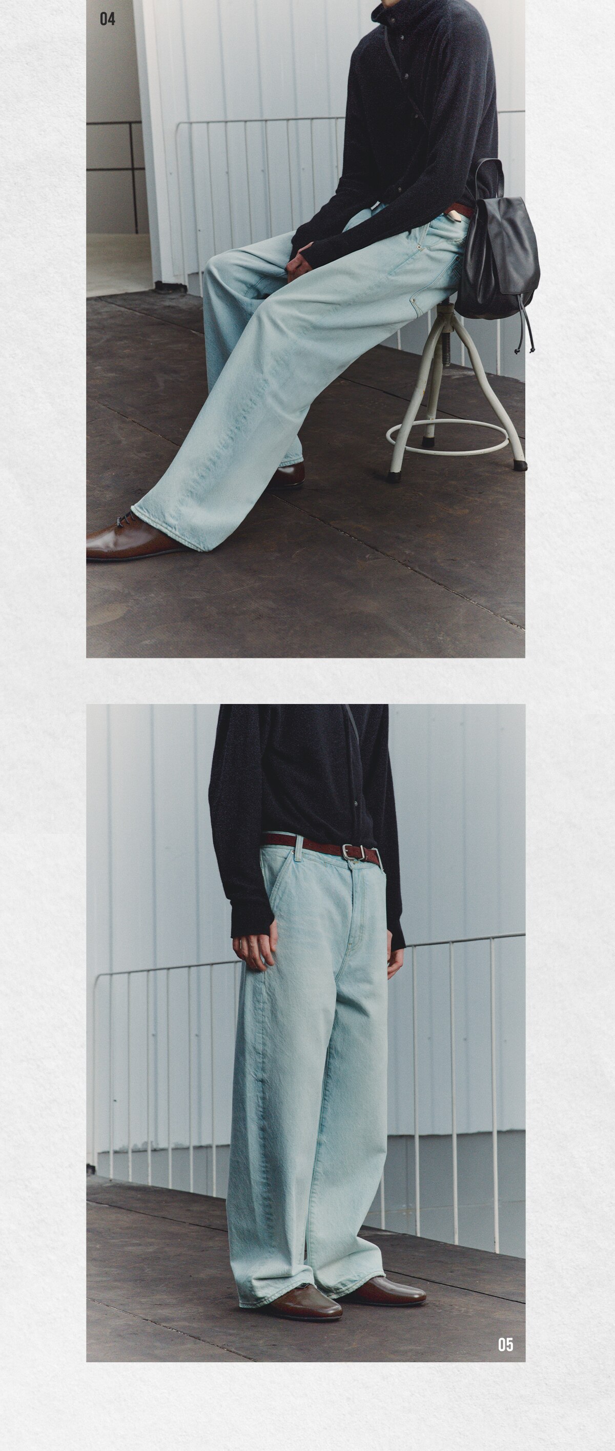 714street高端线BEHALF 土耳其进口「奶油冰蓝」水洗大直筒牛仔裤