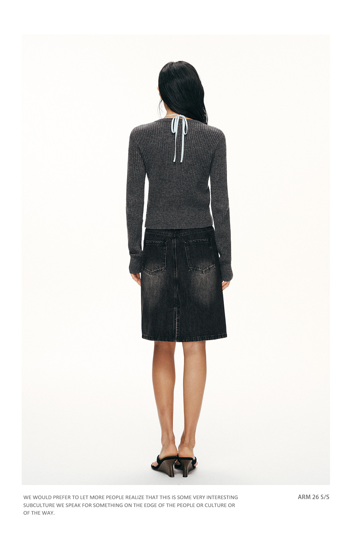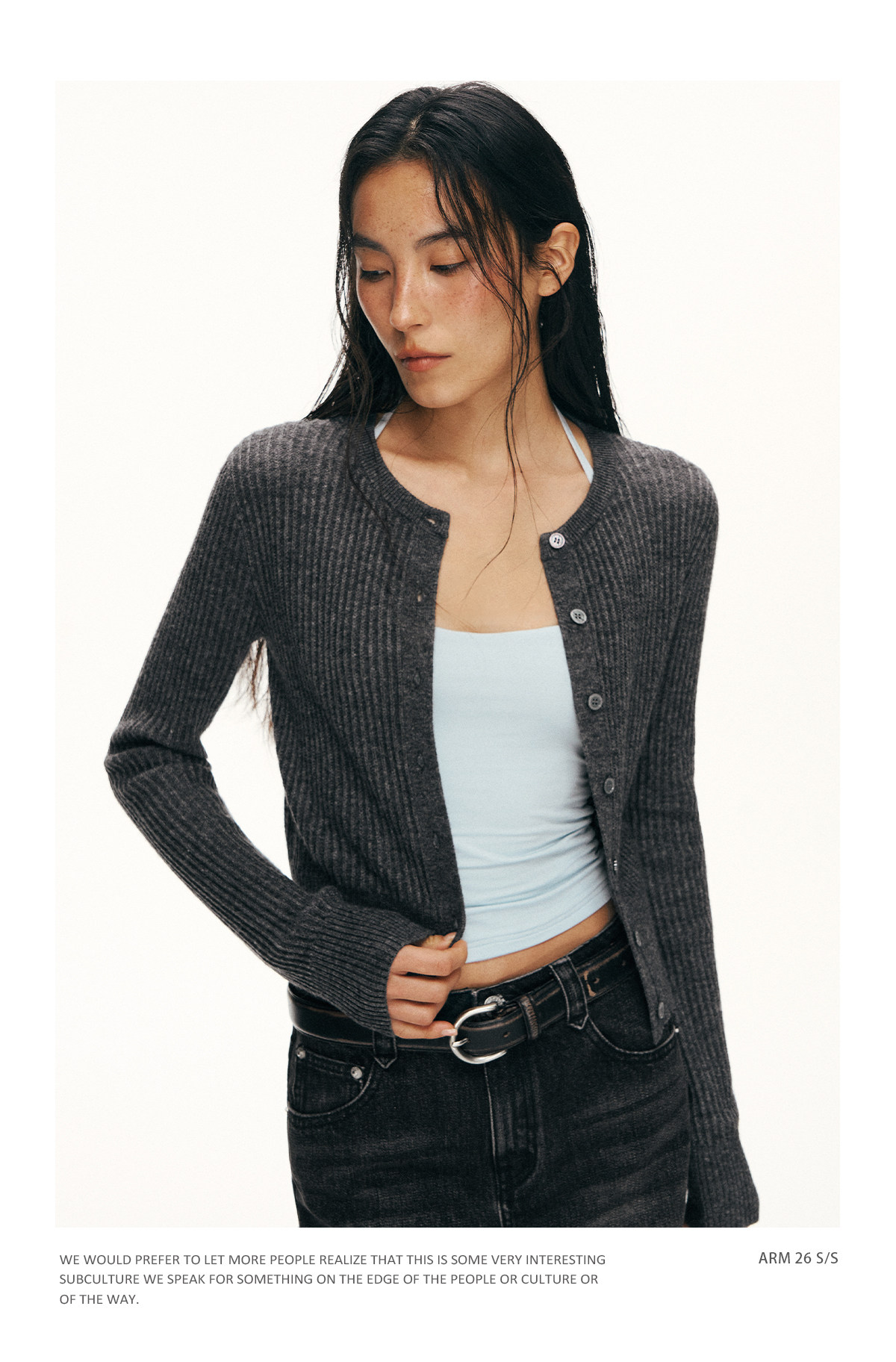 Ariseism黑标 羊毛坑条针织衫女春季新款上衣