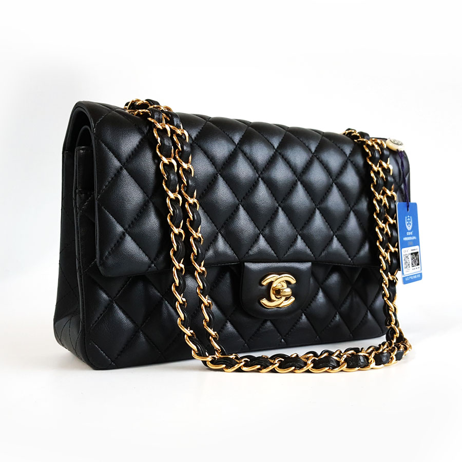 【95新】CHANEL香奈儿CF系列A01112 Y01295 94305中号黑金羊皮CF链条包单肩斜挎包女士030426AK11