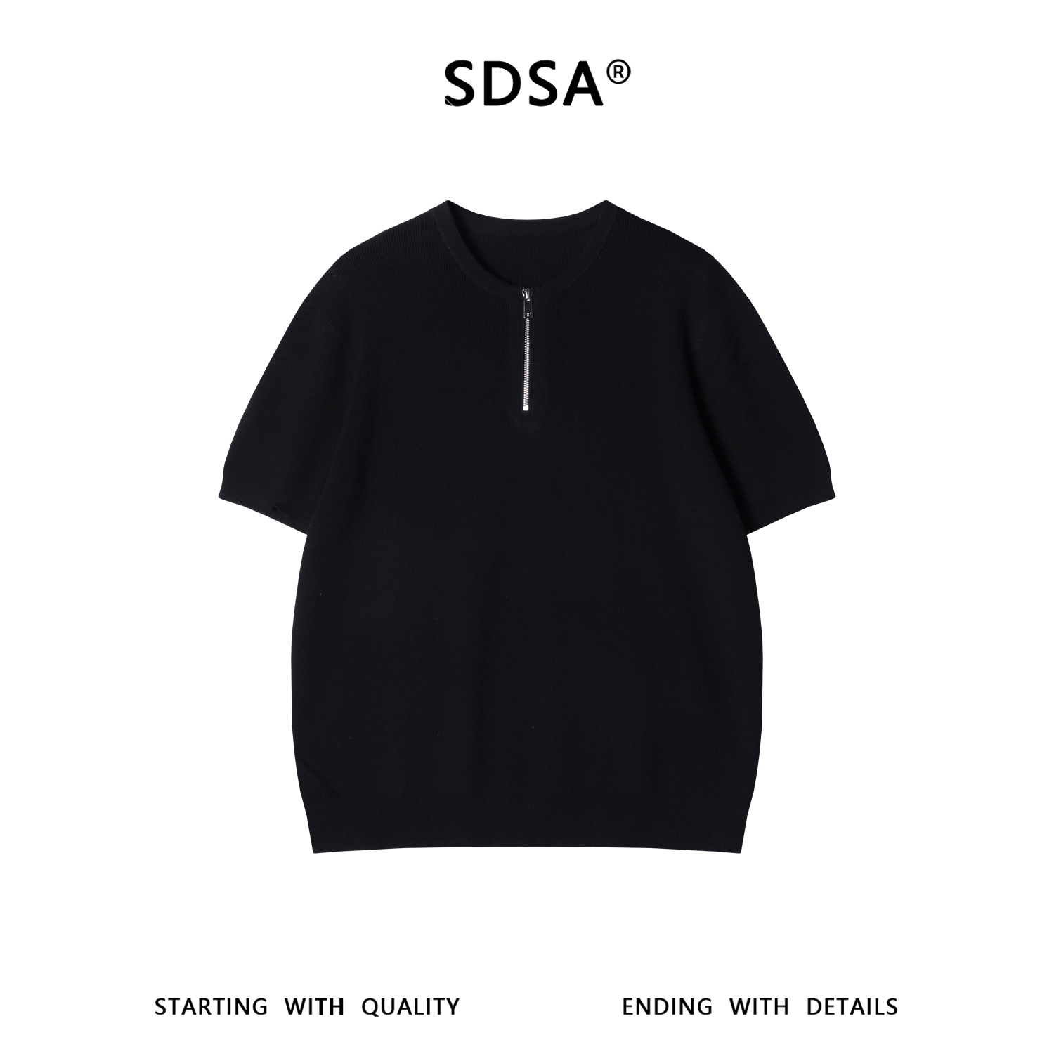 SDSA男装2026新款轻奢基础款老钱风纯色半拉链圆领短袖T恤百搭潮