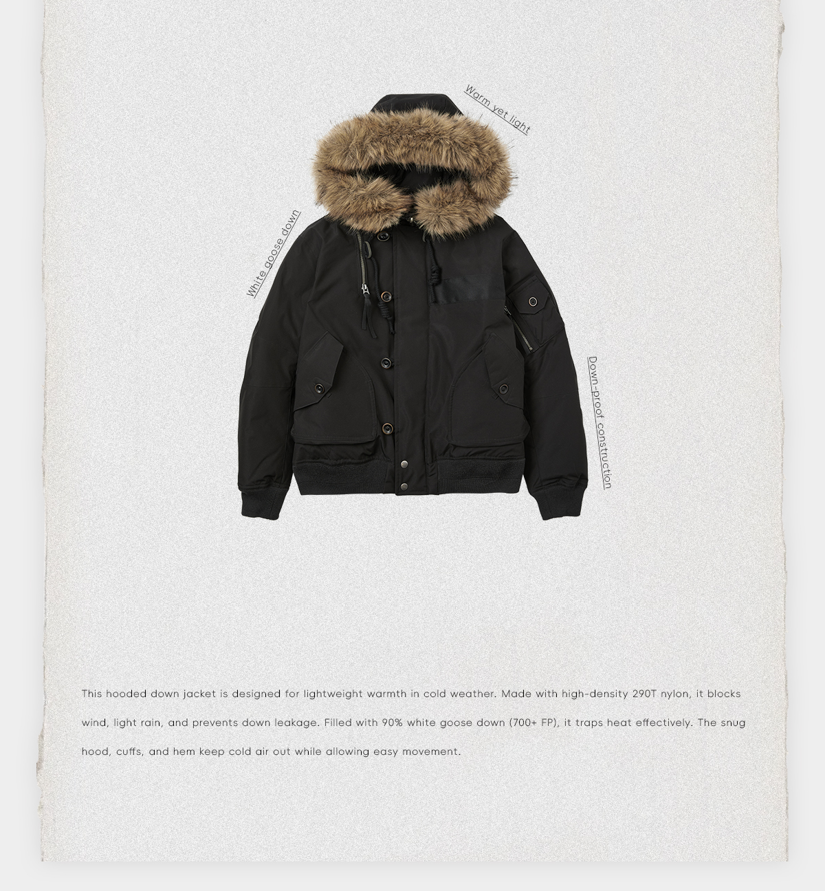 ROMI STUDIO高克重三防90鹅绒厚毛领连帽羽绒服 RWCWWT6073