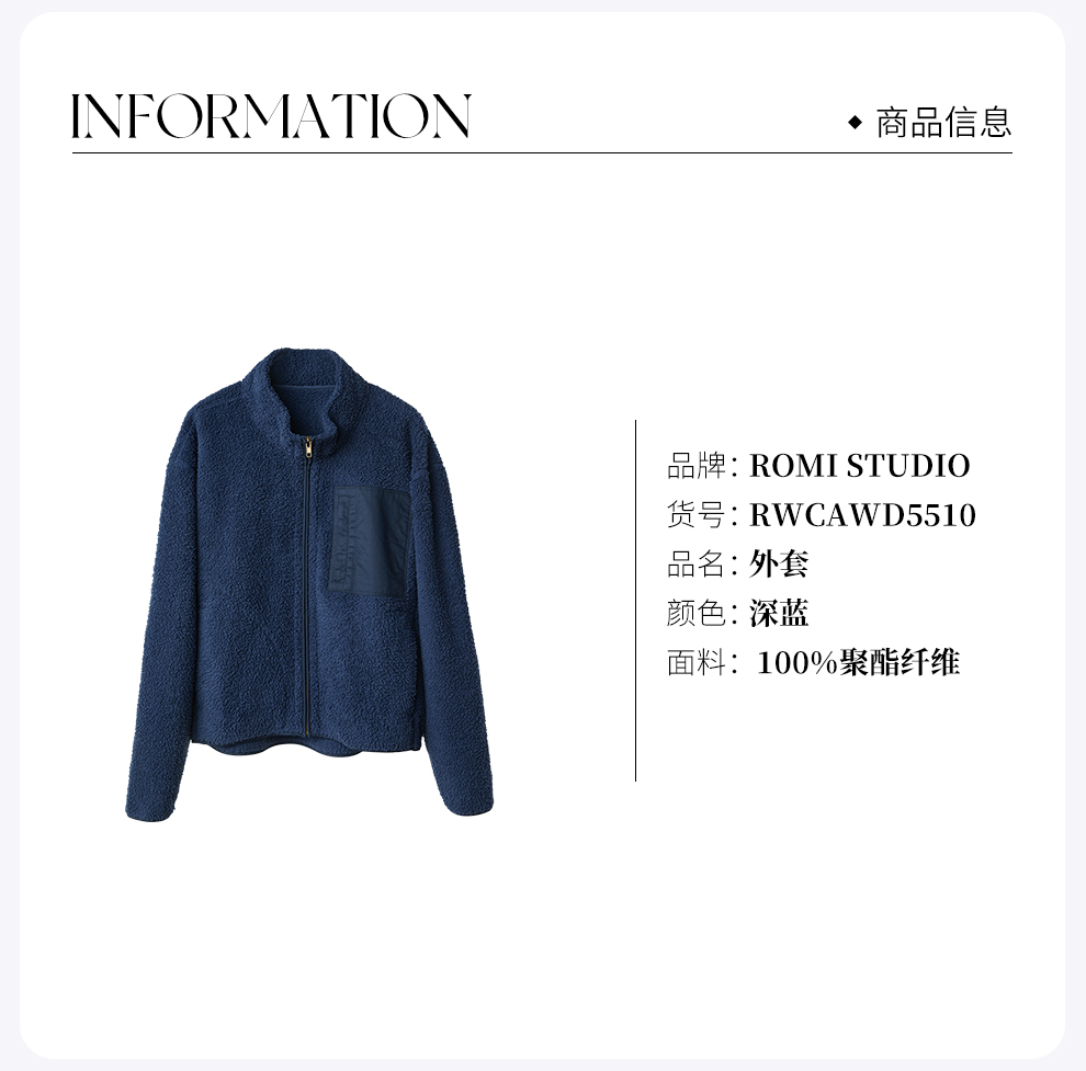 ROMI STUDIO“美式休闲”珊瑚绒舒适保暖宽松高领外套RWCAWD5510
