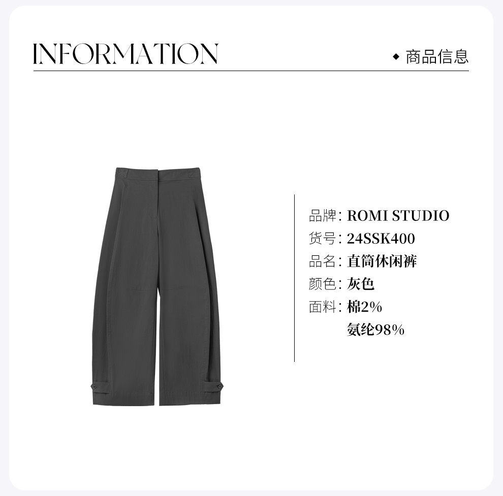 ROMI STUDIO“简约主张”高支棉可调节裤口筒型直筒休闲裤 24SSK400