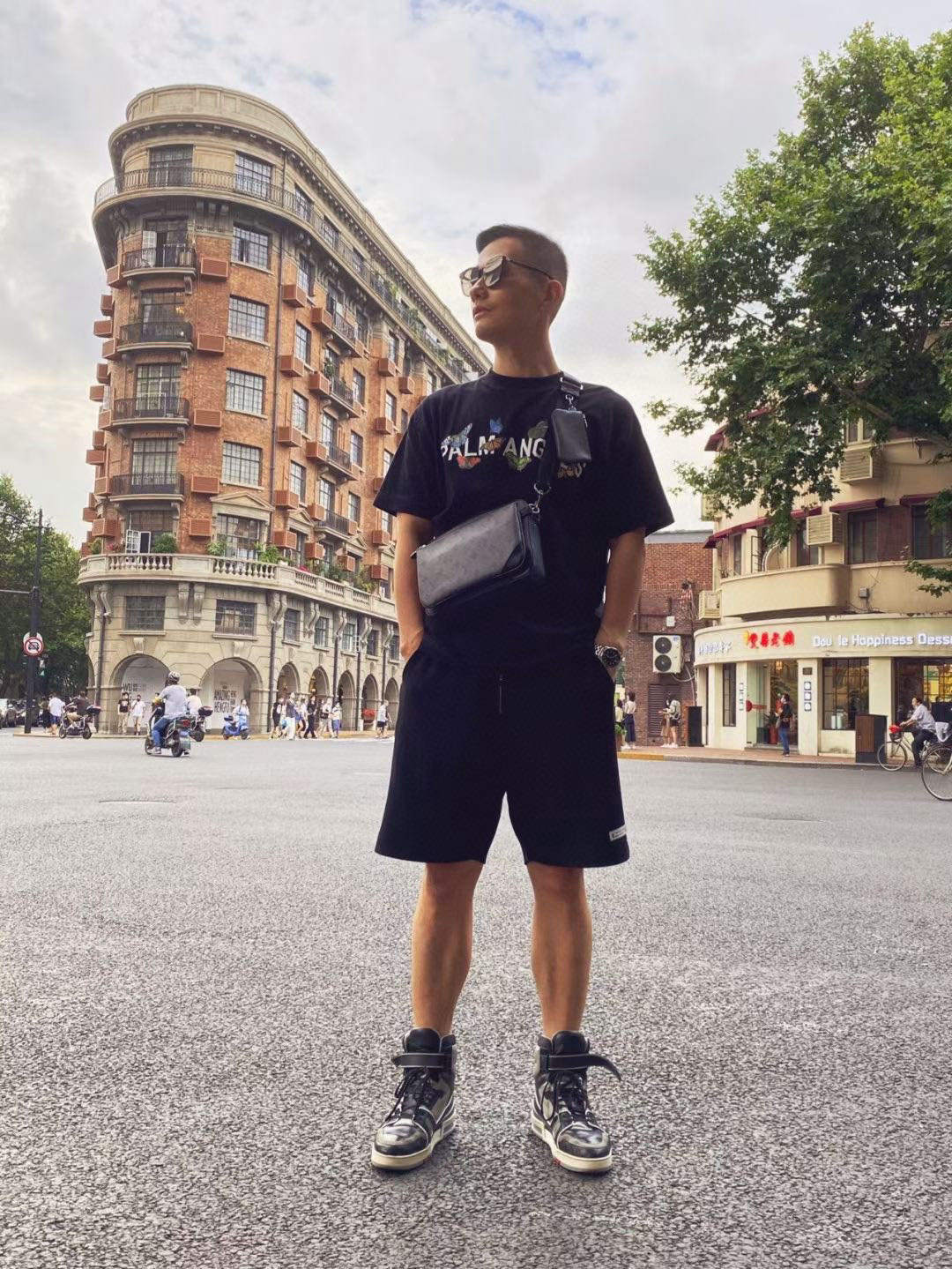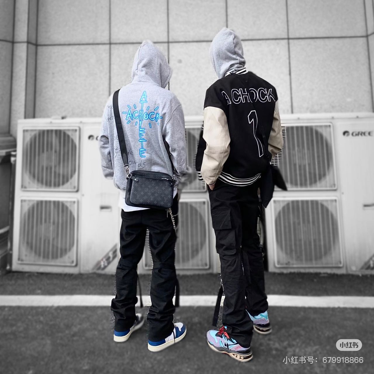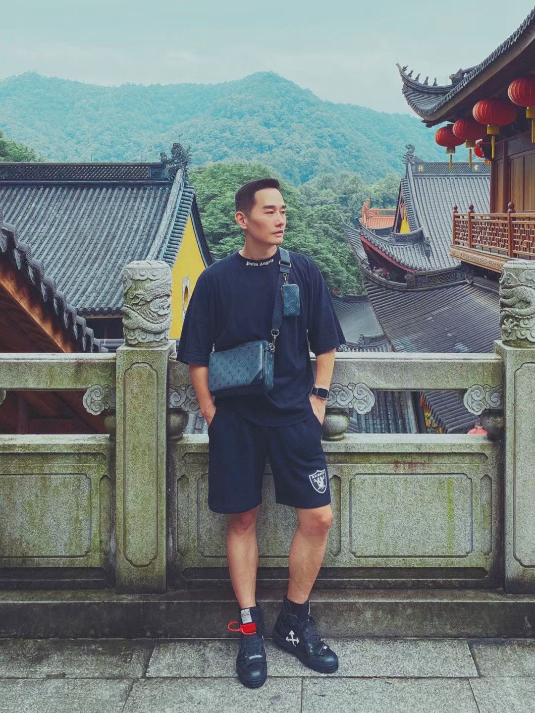 虽然有三个包组合成,但正正方方的包型也显得蛮简约的,黑灰配色的印花相对来说也更百搭。有稍微试了一下几个背法,单背大的那个就会正式一些,适合通勤的时候。最小的那个可以扣在腰间当配饰。三个包一起背可以蛮街头的…