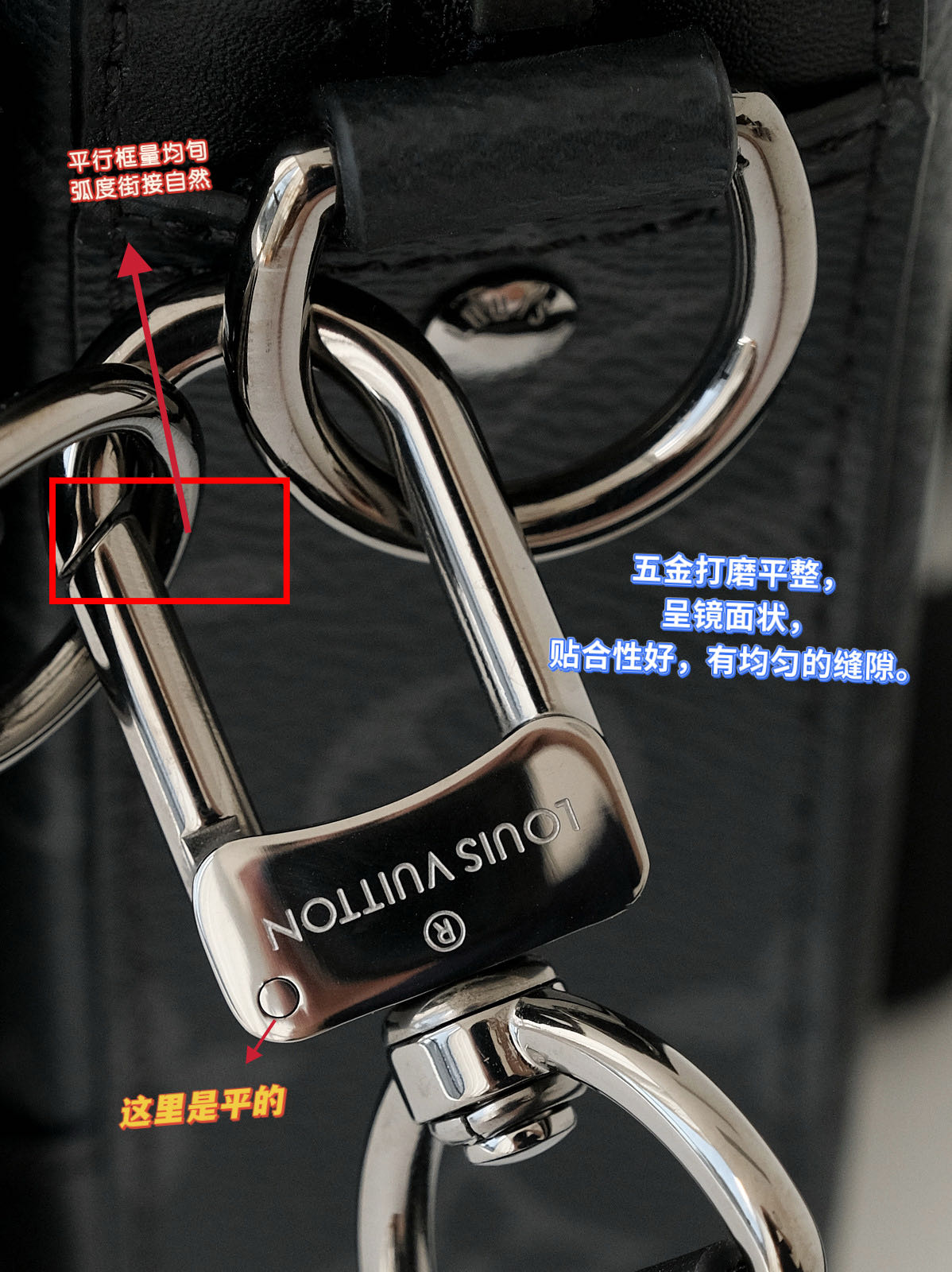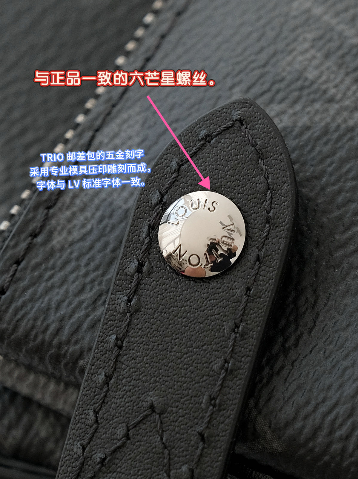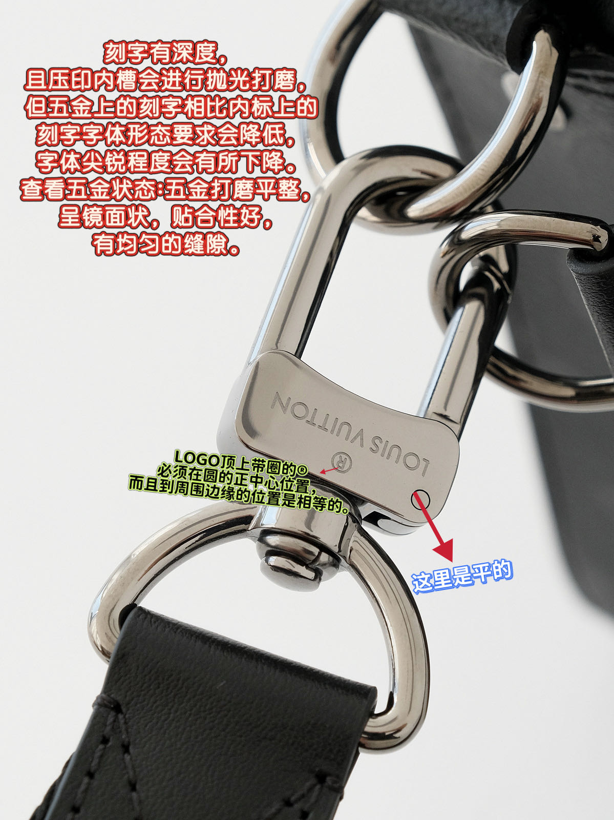 压印logo,这里可以说是最重要的防伪点之一了,因为大牌的logo宇体中的每一个字母都是非常有讲究的,所以要做到一模一样,其中所花费的成本就非常之高!市面货一般为了节约成本,直接用的word中的字体,这里不用多说,一眼假!但也有很多是模开的不精细,外形看起来类似但是经不起细细琢磨的!