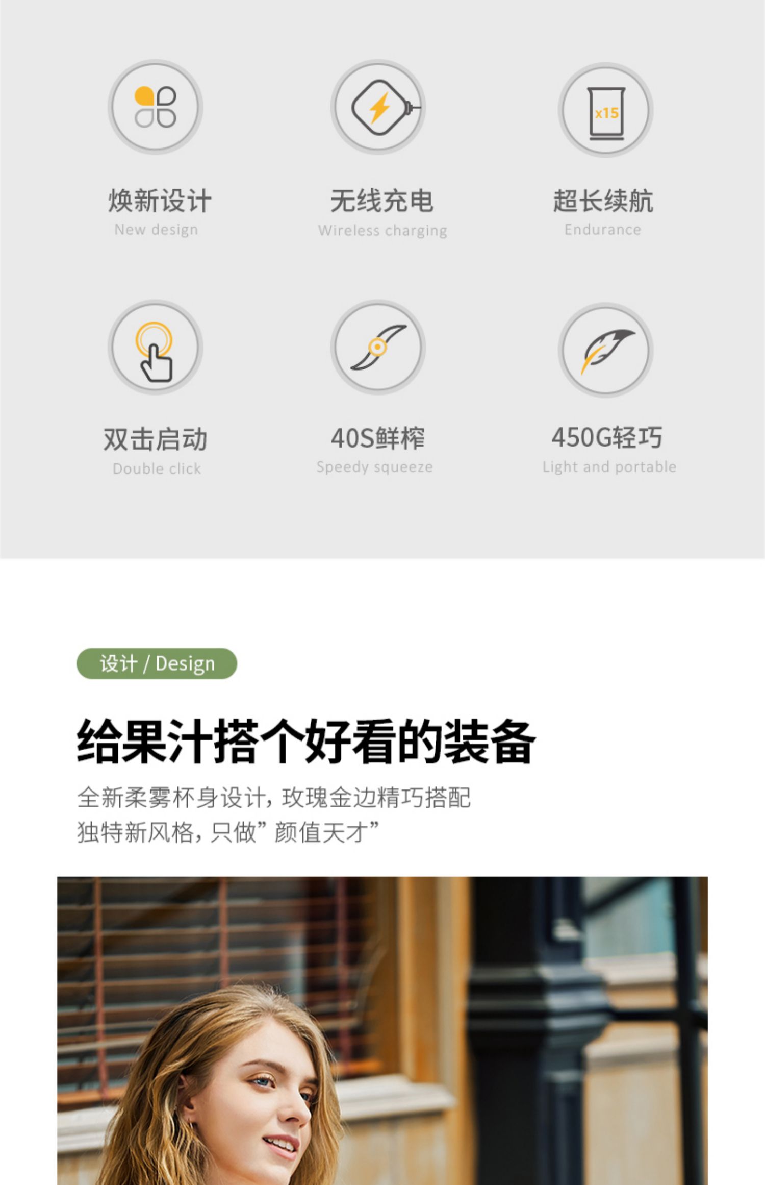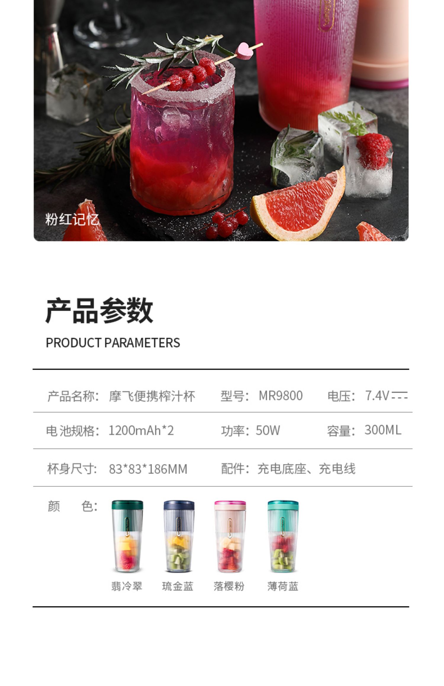 摩飞水果榨汁杯无线充电小型便携果汁机家用迷你烹饪机搅拌料理机