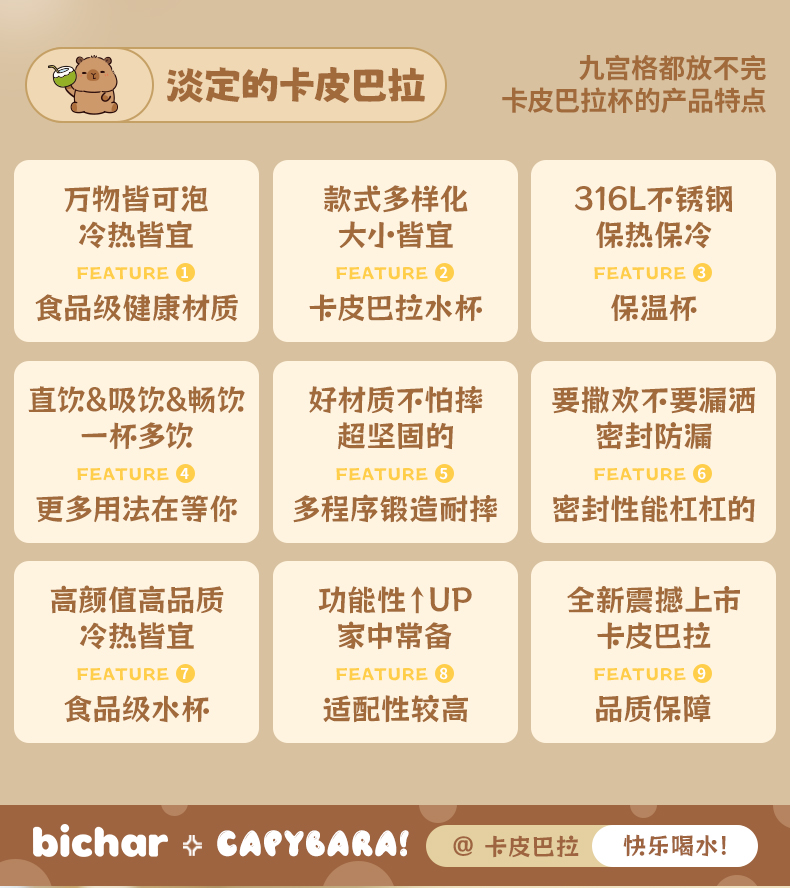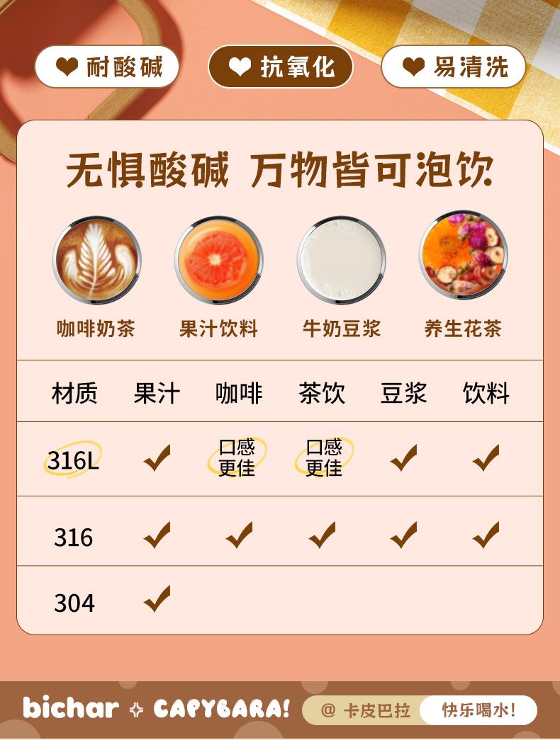 杯趣316不锈钢保温杯卡皮巴拉家族全系列水杯