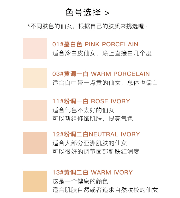 适合肤质:所有肤质 功效:遮瑕、提亮肤色