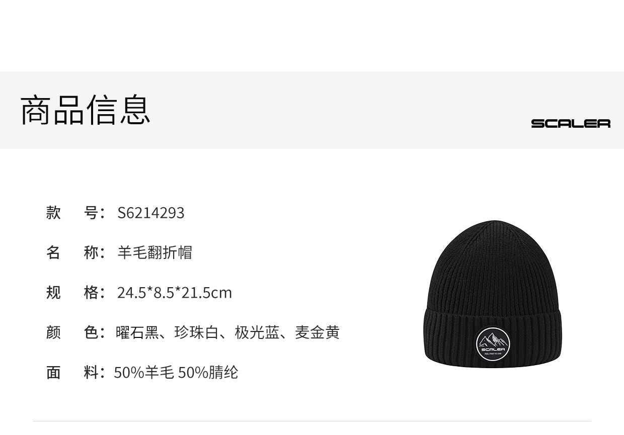 【羊毛翻折帽】SCALER/思凯乐 户外秋冬男女保暖针织帽冷帽S6214293