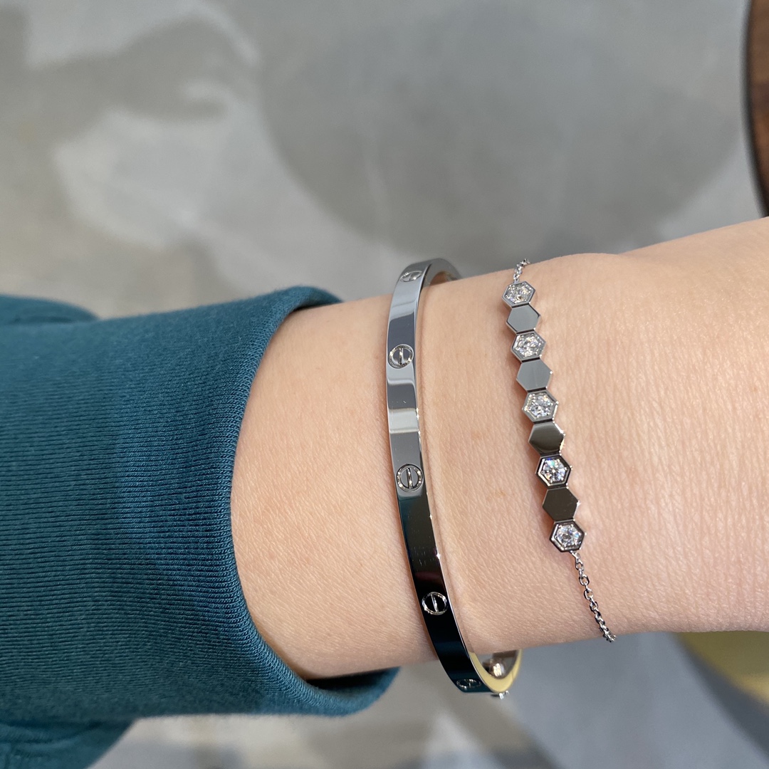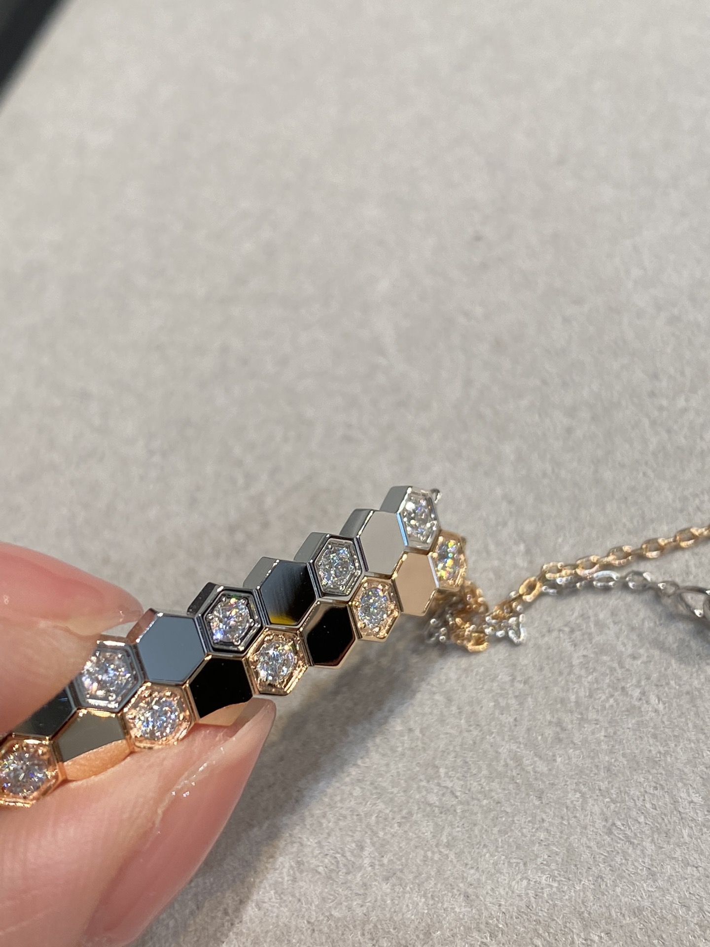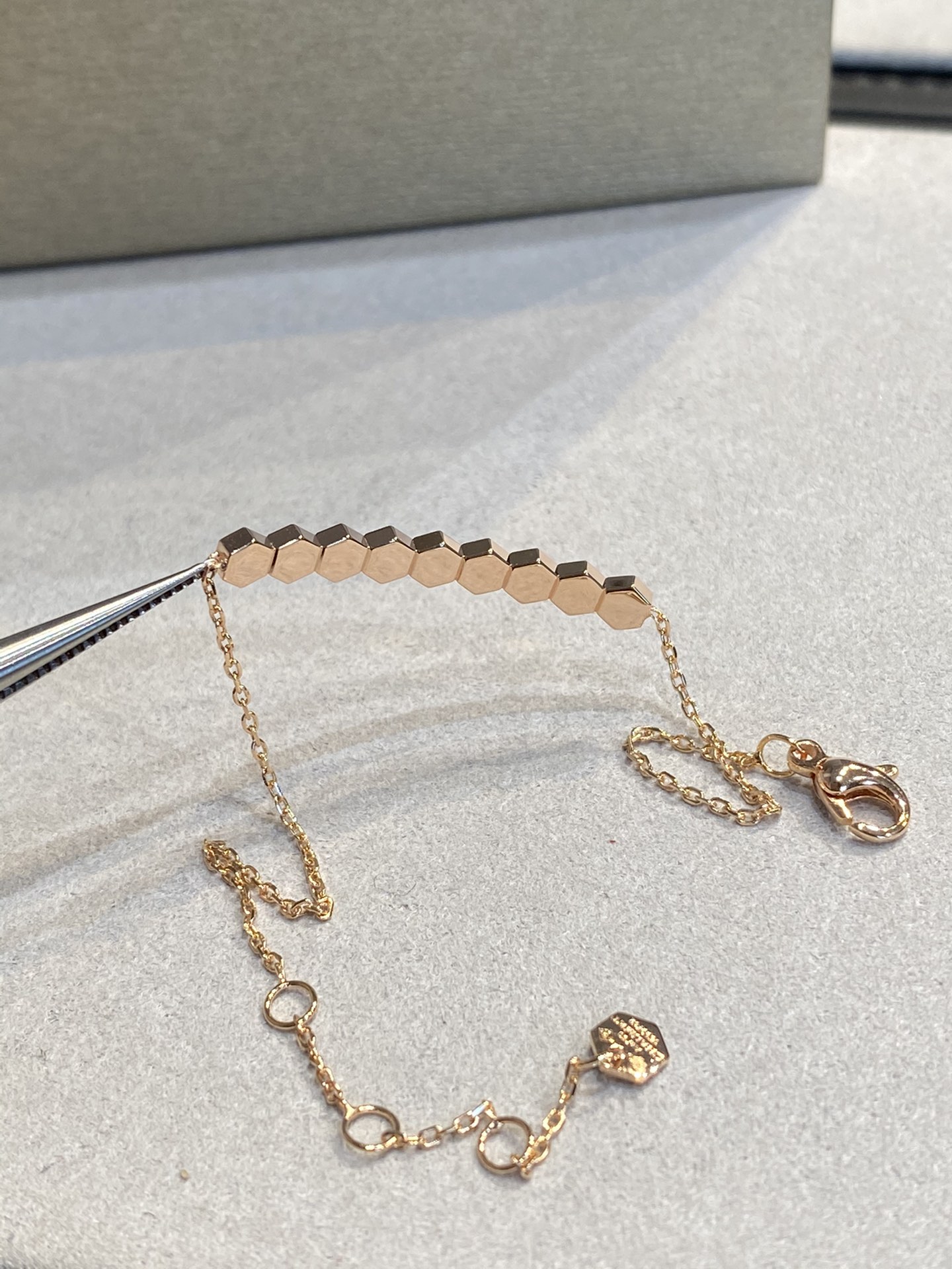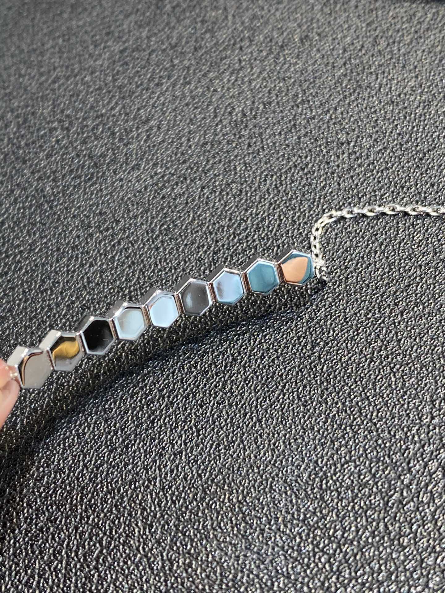 专业级珠宝开发 所有蜂巢都采用进口cnc精雕机精雕完成,六边形的精雕可以使同款手链无限重叠,重叠后正面侧面绝对零缝零凸起