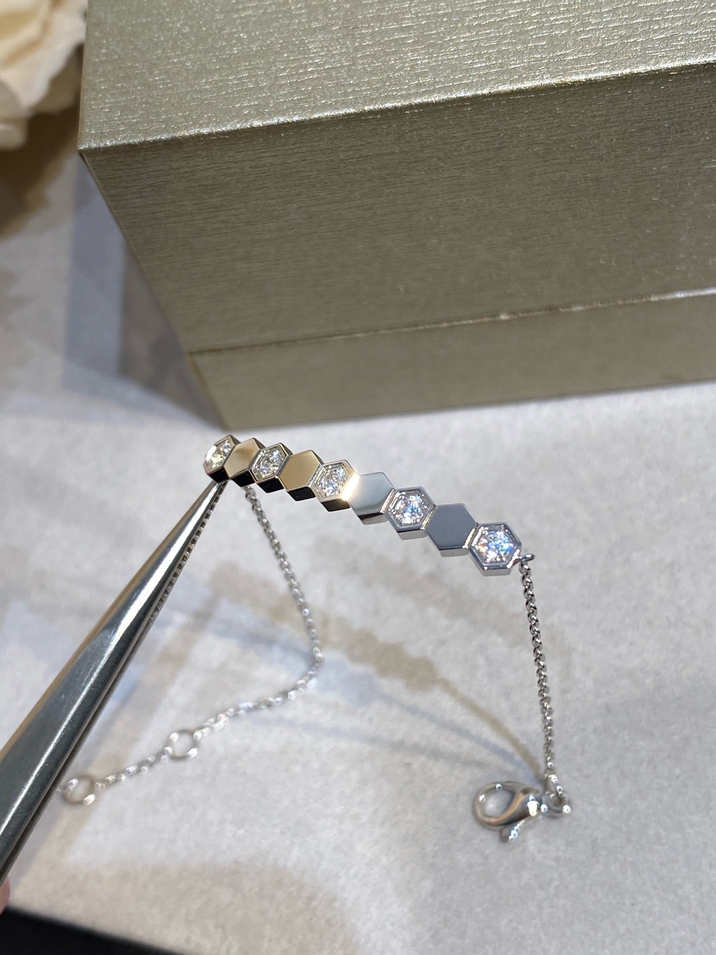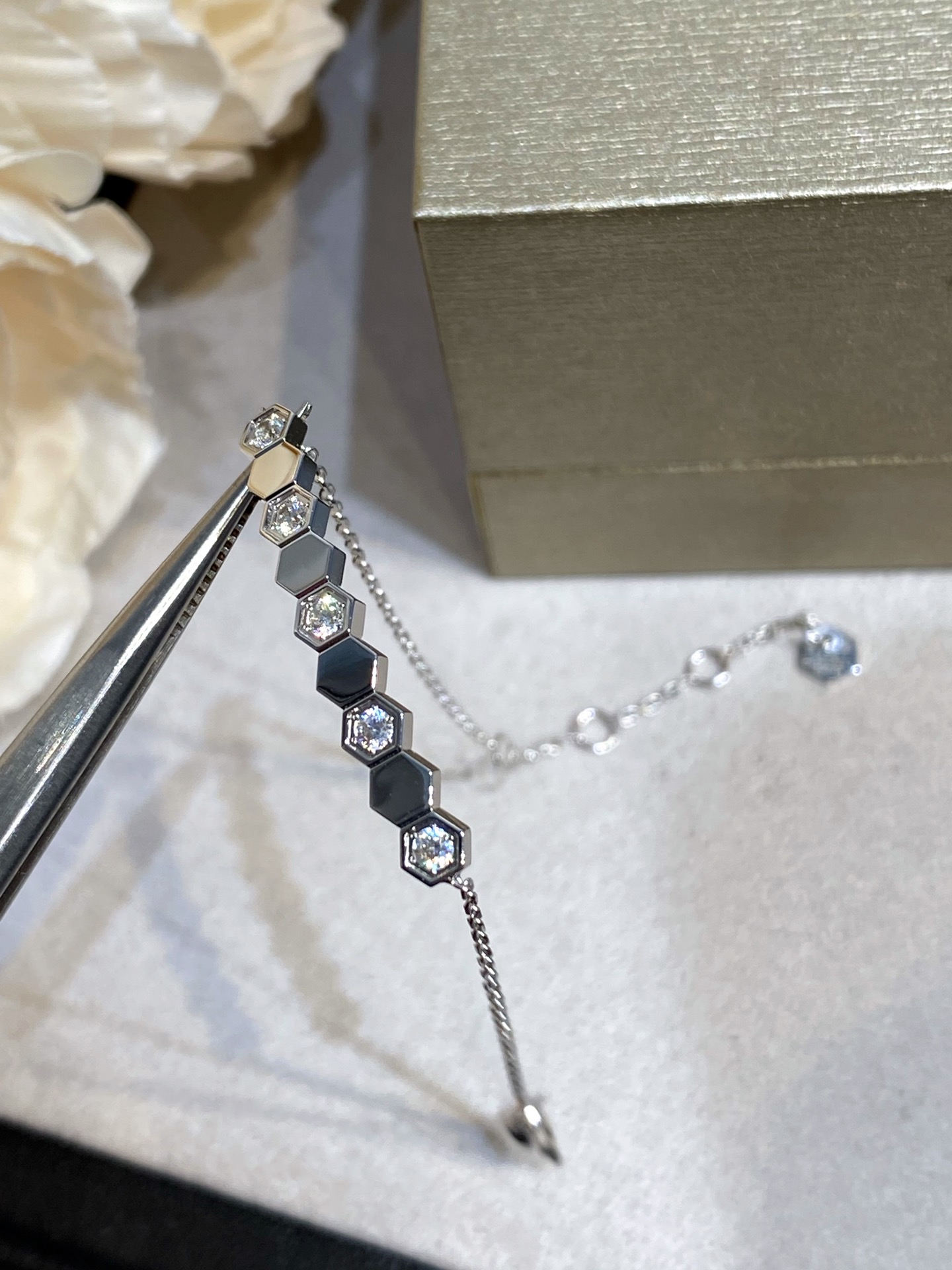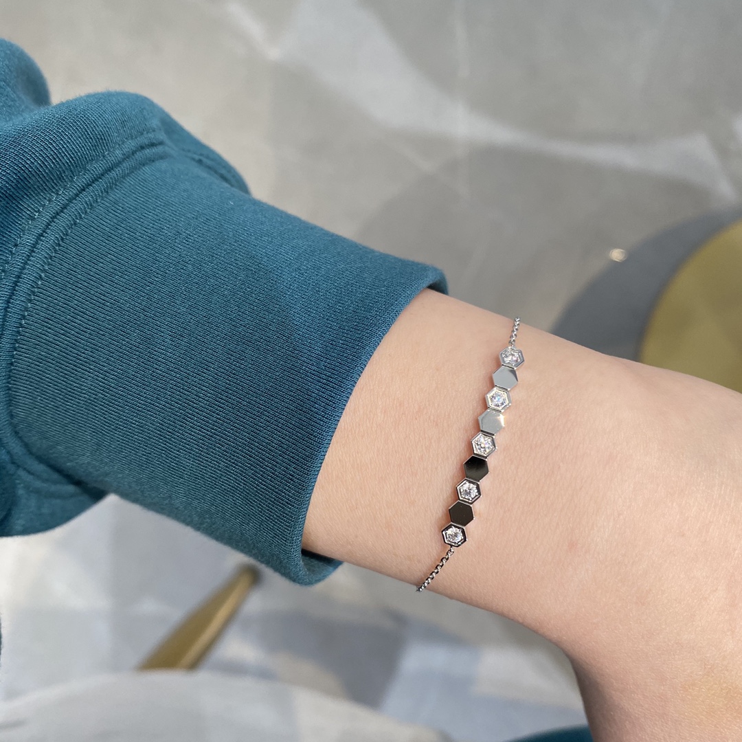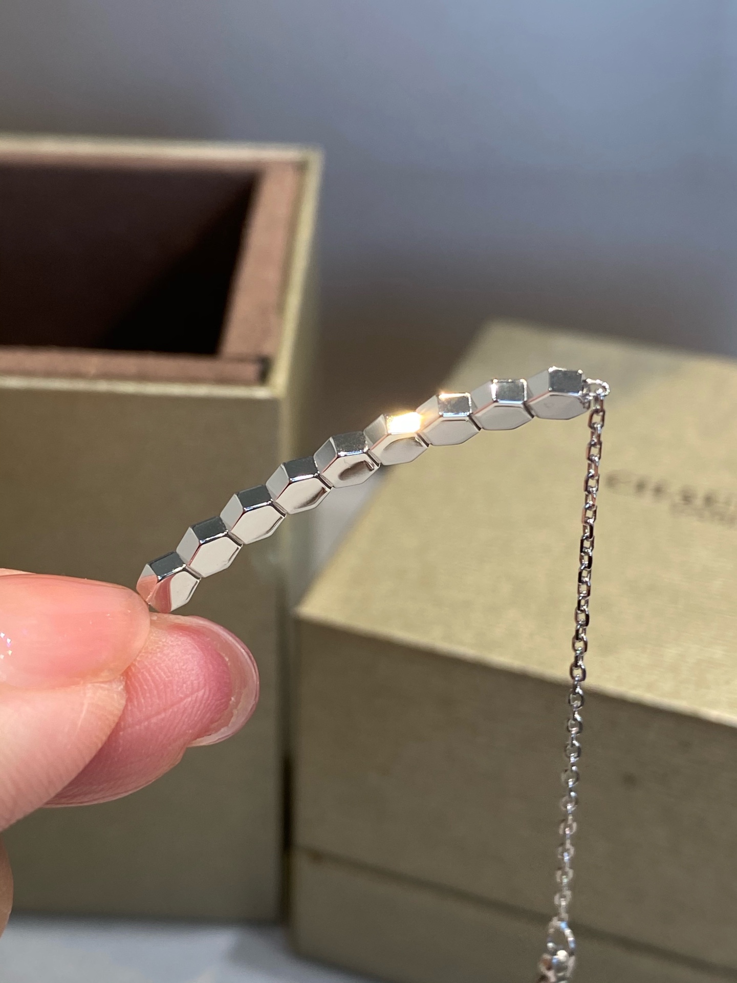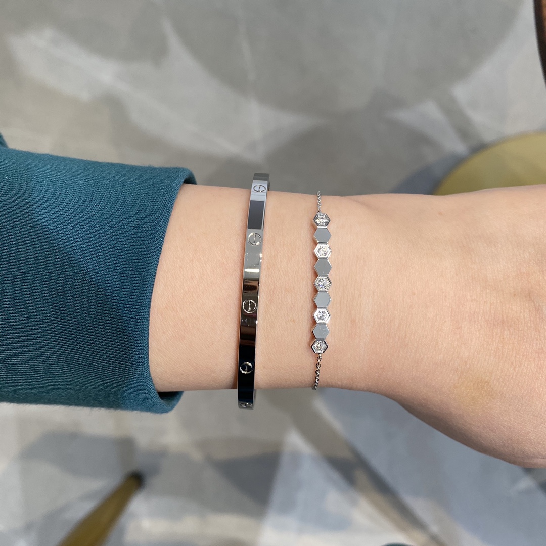 专业级珠宝开发 所有蜂巢都采用进口cnc精雕机精雕完成,六边形的精雕可以使同款手链无限重叠,重叠后正面侧面绝对零缝零凸起