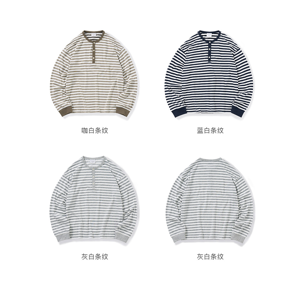 714street亚麻条纹亨利领长袖